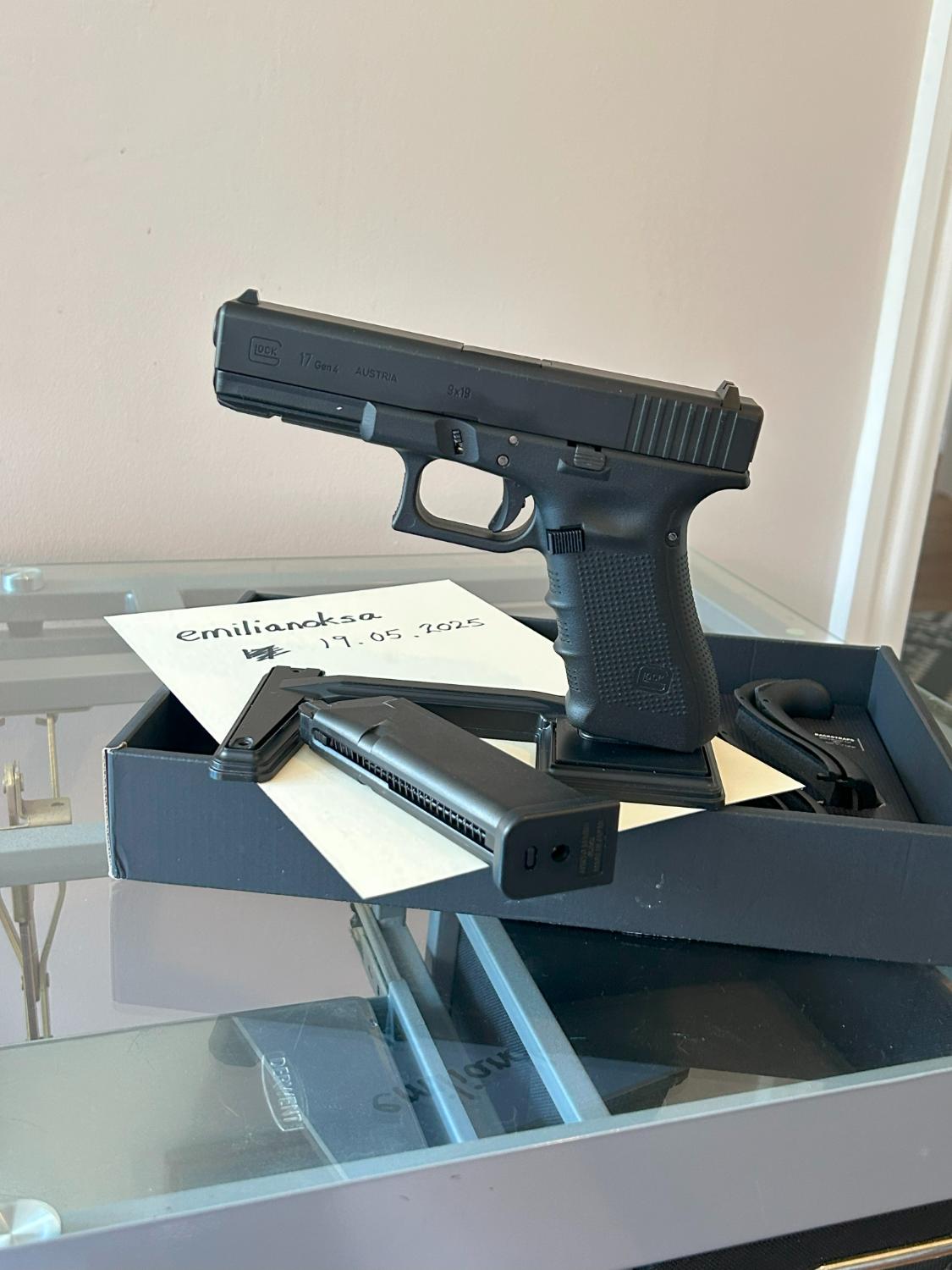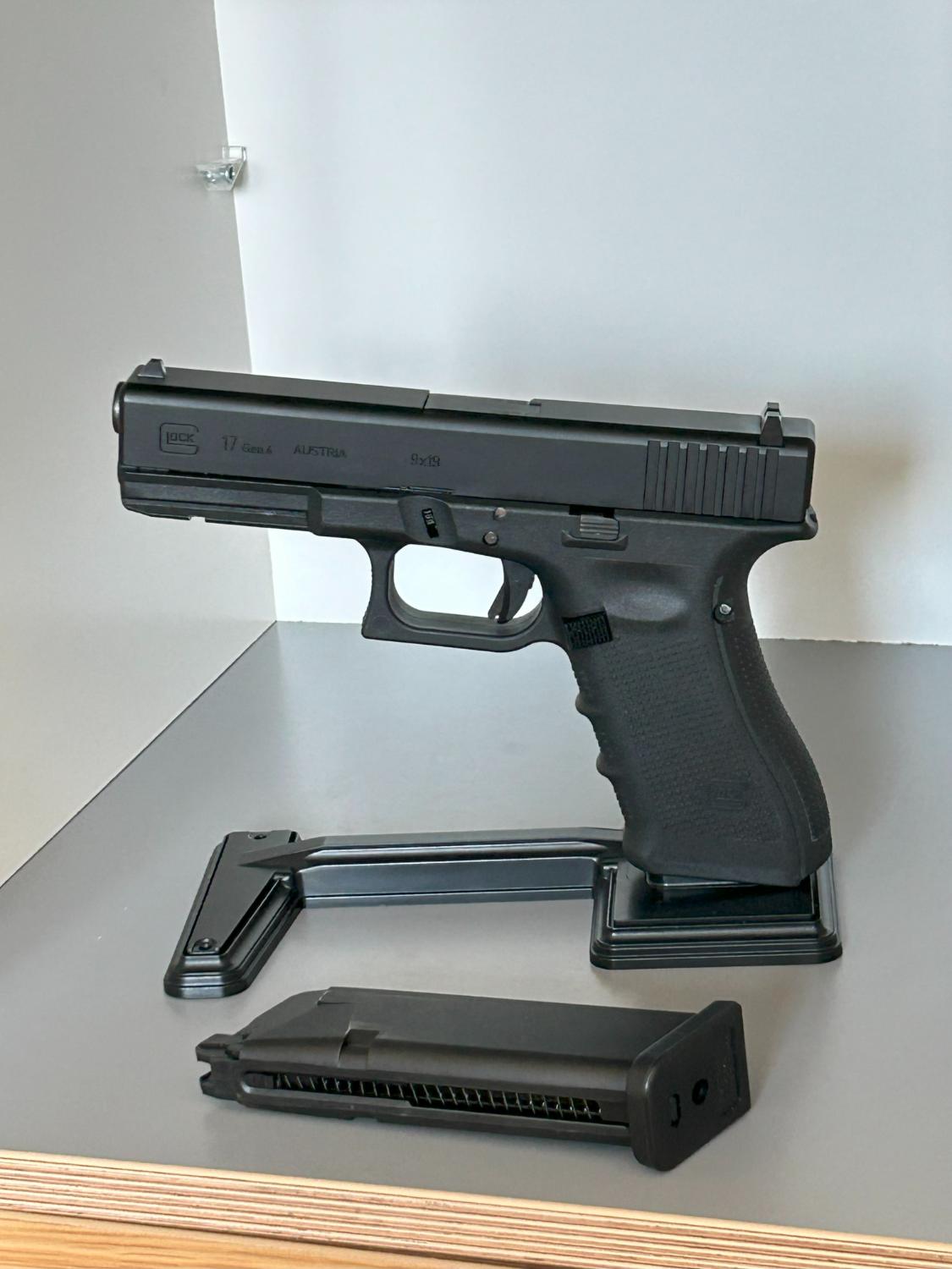 Comes with the Guarder nylon fibre frame if you want to fit it (they look good and have the correct Austrian markings) and a Laylax pistol display stand. I paid about 140 for the pistol, over 40 for the Guarder frame, and about 17 or 18 quid for the Laylax stand.