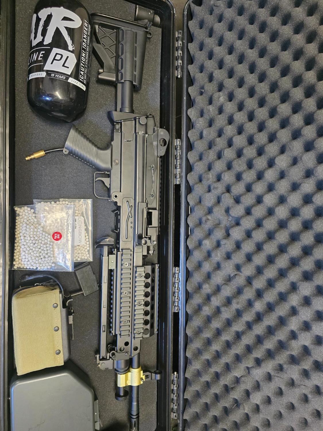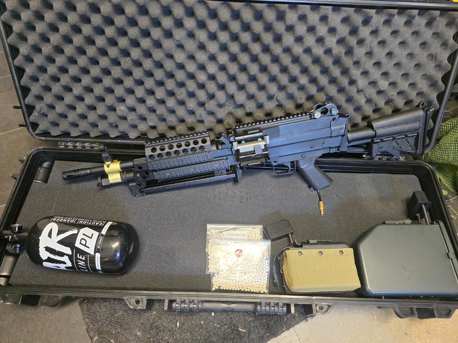A&K M249 MK46 Mod 0 Support Gun its fitted with a Polarstar f2, comes with everything you see just needs a battery, reg and line