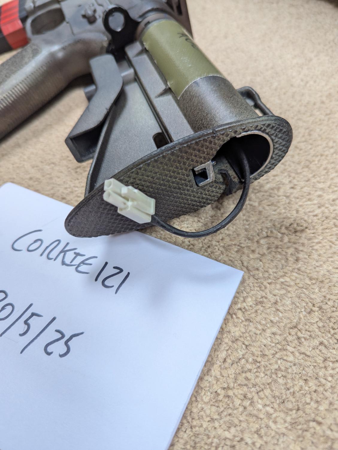 Bought the rifle for this project for fun, but don't really have any interest in AEGs. The motor height screw backed out when testing and (I believe) the motor pinion has stripped. Should be a simple fix for someone who wants to tune this anyway, have reflected this in the price.