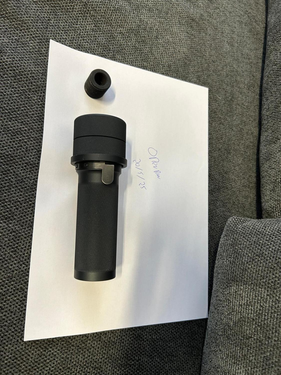 AK style silencer, with foam inserts, top can be opened to put a tracer or flash device in there.