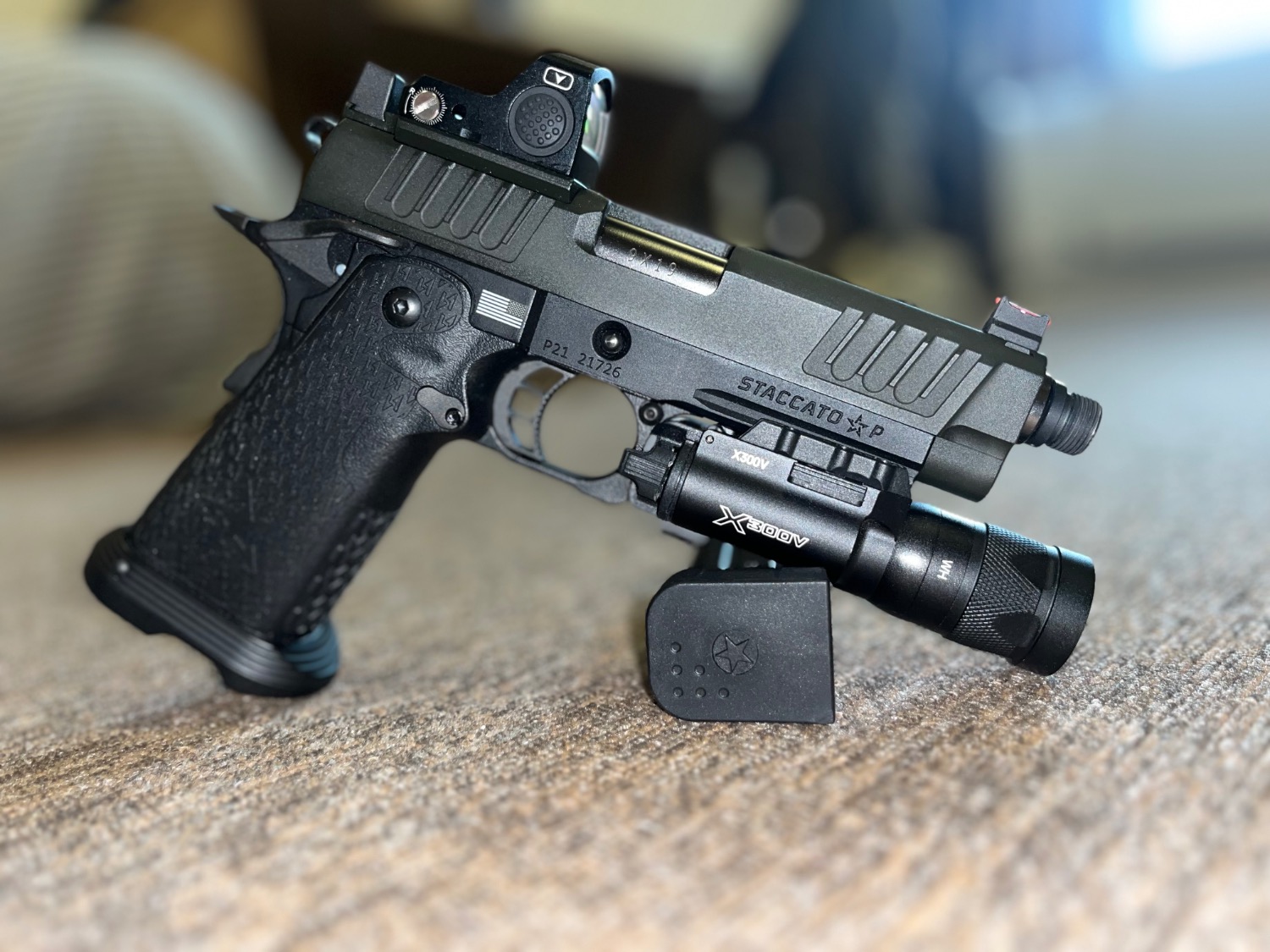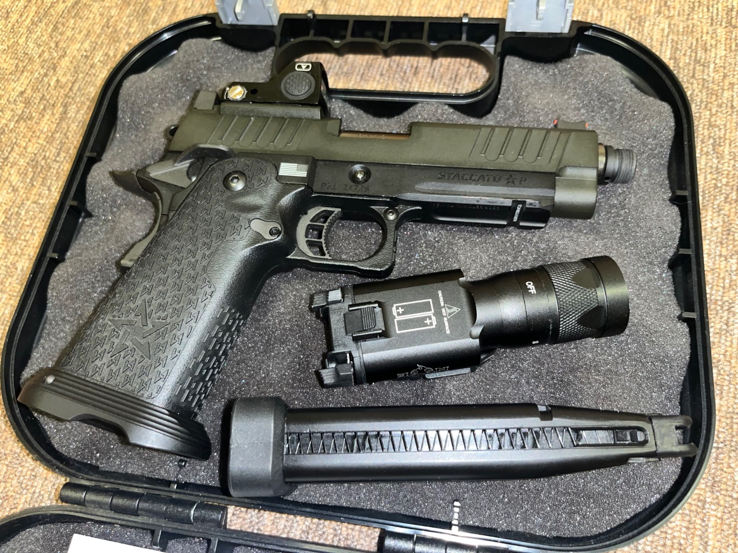 Up for sale is my EMG Steccato P. I’ve put around 5 mags through it but selling as new as it is literally in new condition.