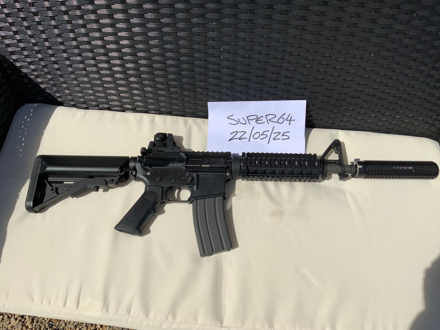 Accessories: 1 leak free magazine, Z-Parts steel outer barrel, replica Knights Armament suppressor, original Knights style foregrip (not pictured)
