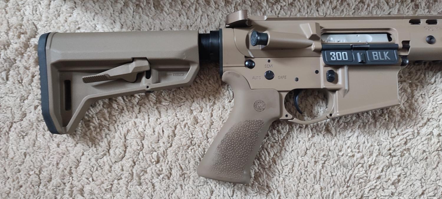 Genuine rubber Hogue grip and Magpul SL-K stock, replica Magpul handstop, adjustable NPAS