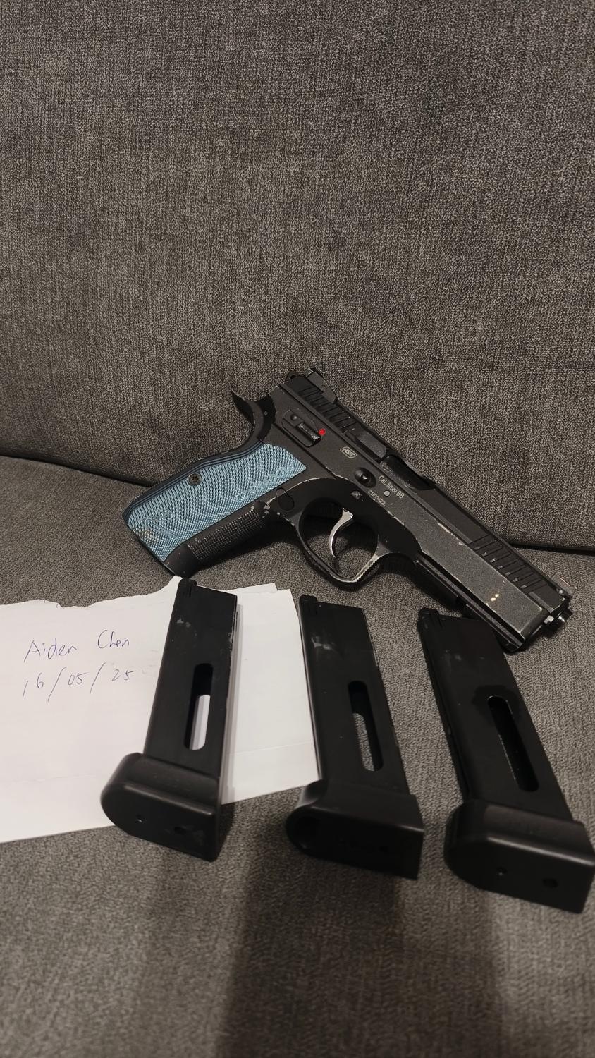 Comes with 3 CO2 mags, 2 are gas tight, 1 has leak (marked on bottom plate)
