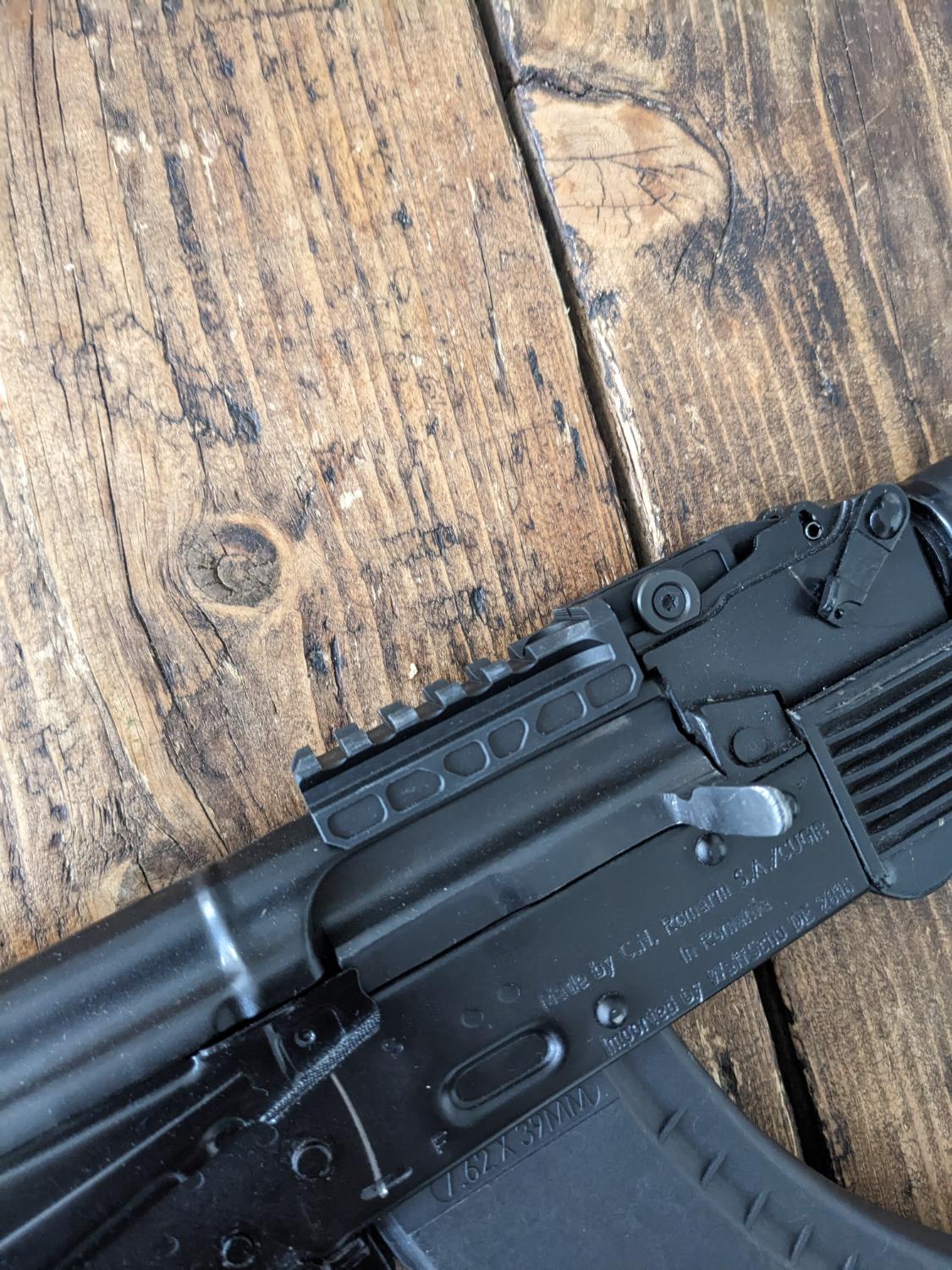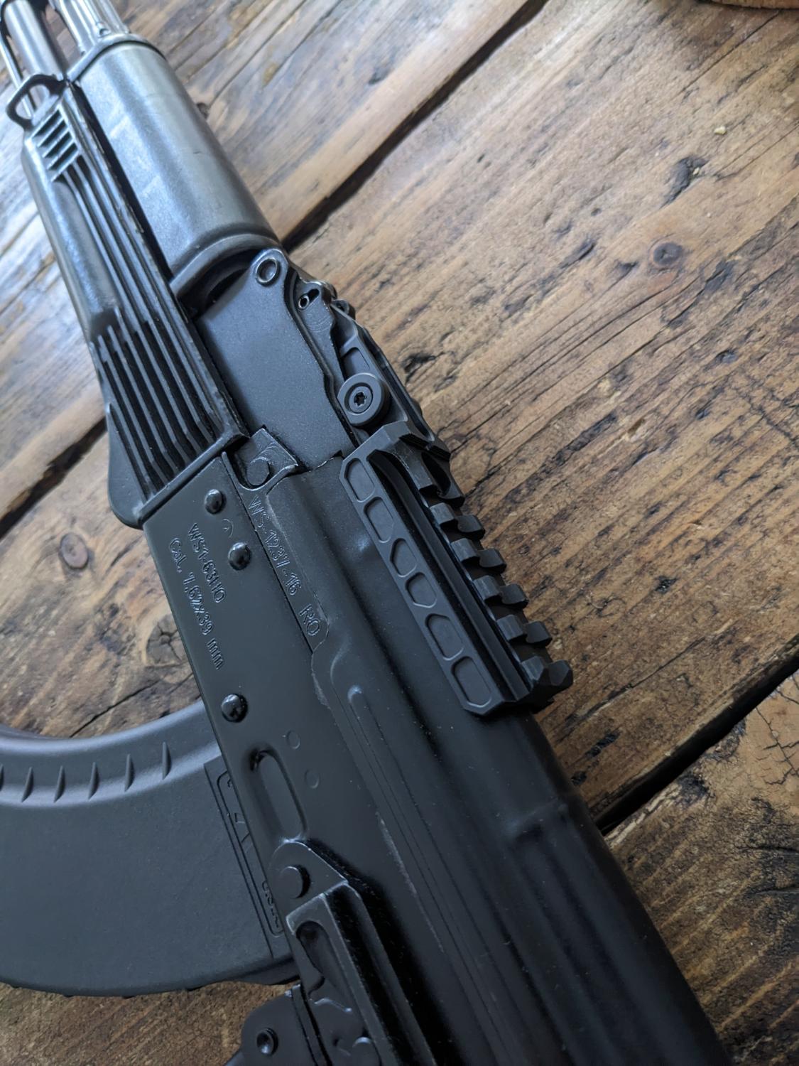 Genuine RS AK Midwest Industries AK red dot rail. Mounted in place of the rear sight.