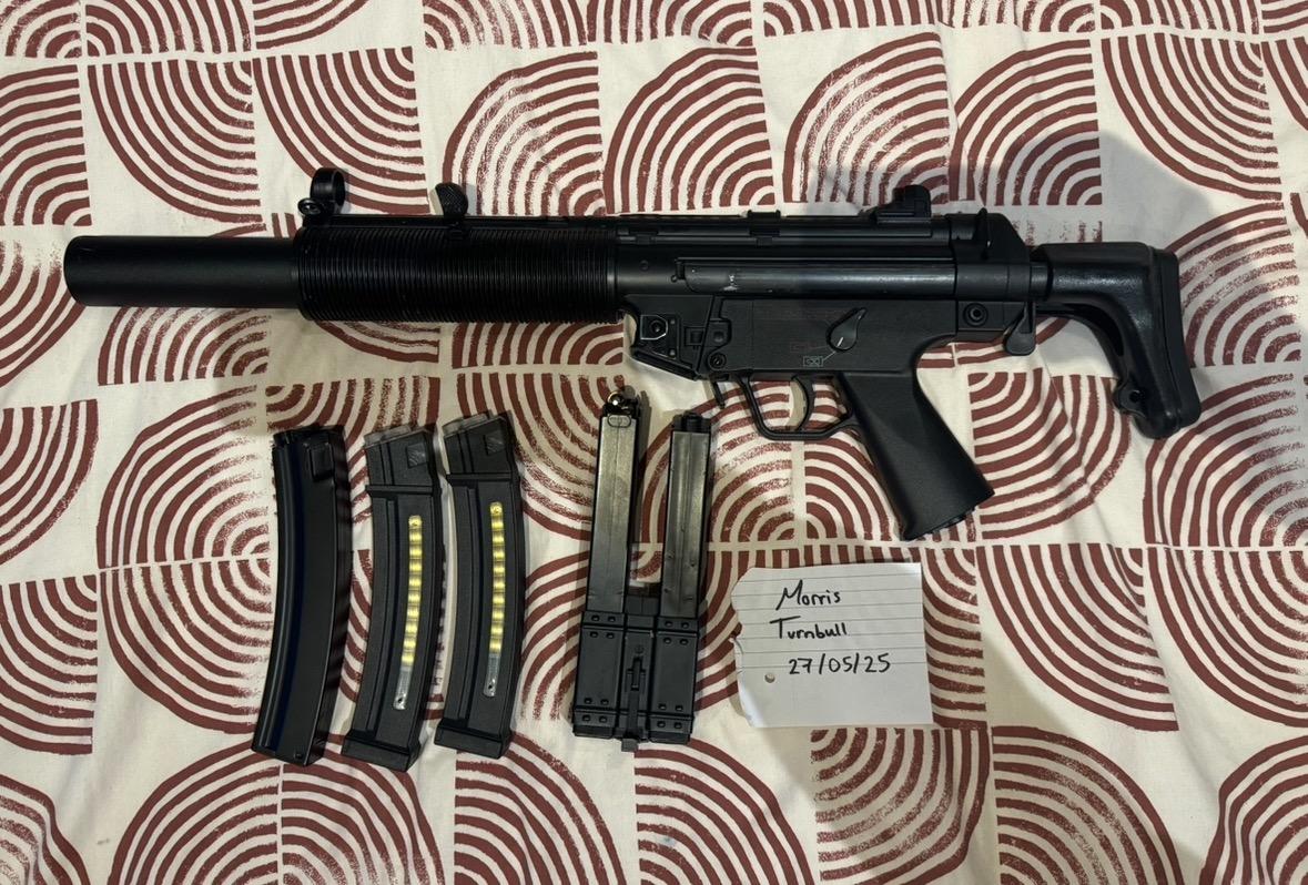 Fully functional. Seen a couple of games. Front wired to mini tamiya (see picture) comes with 2 x 130rnd mid caps, a 200rnd high cap and a 500 round dual high cap.