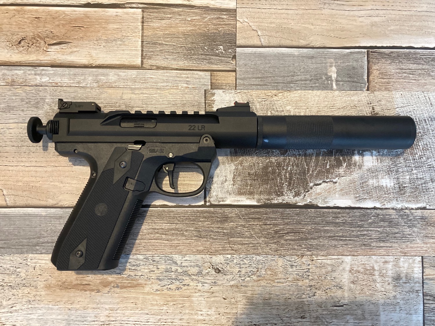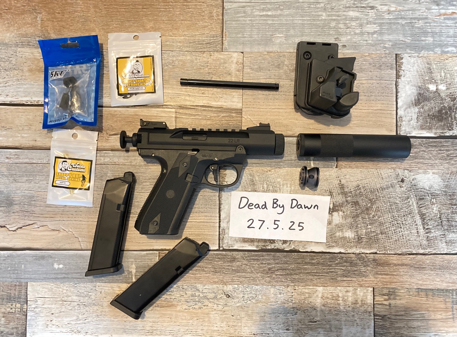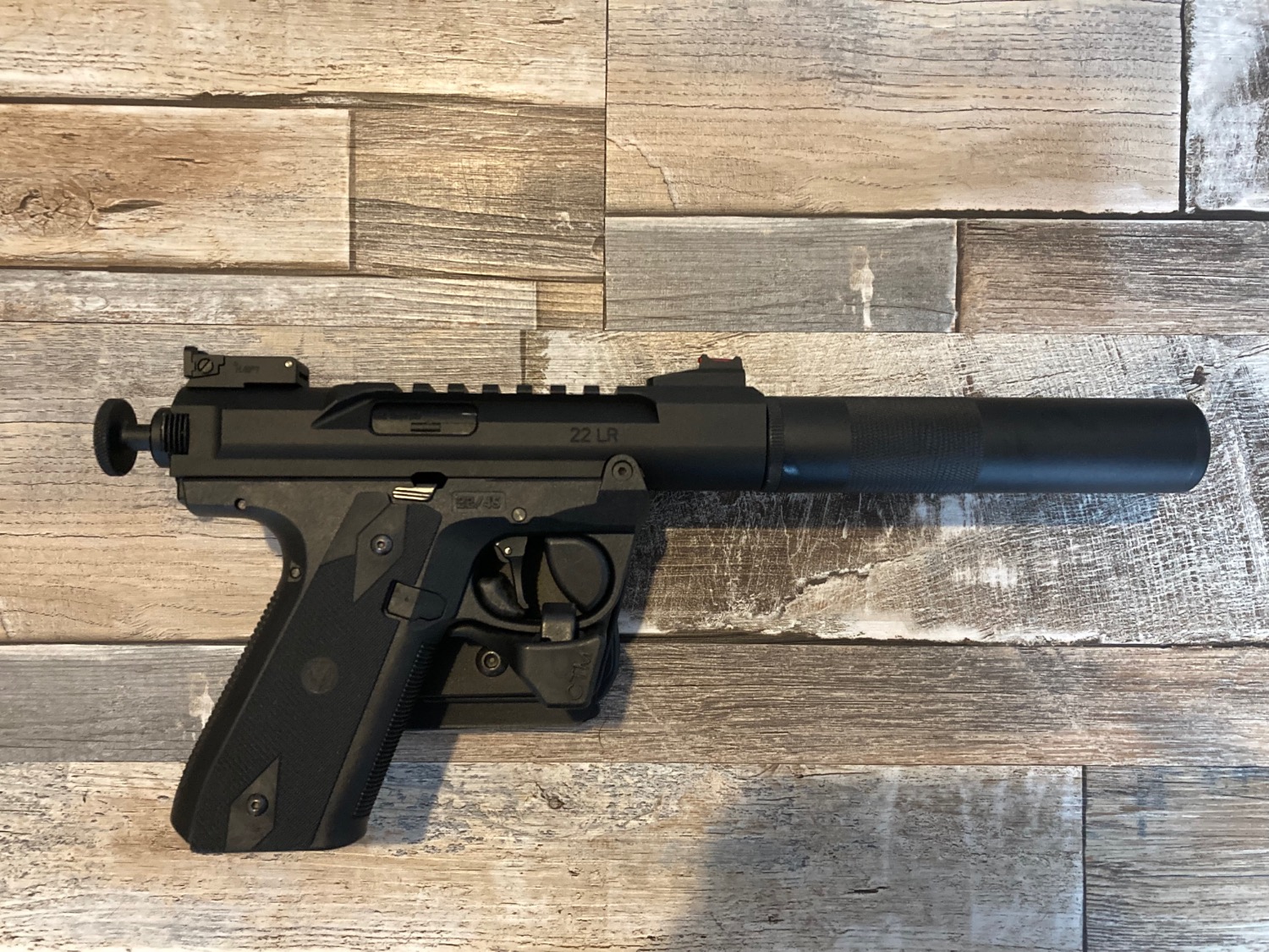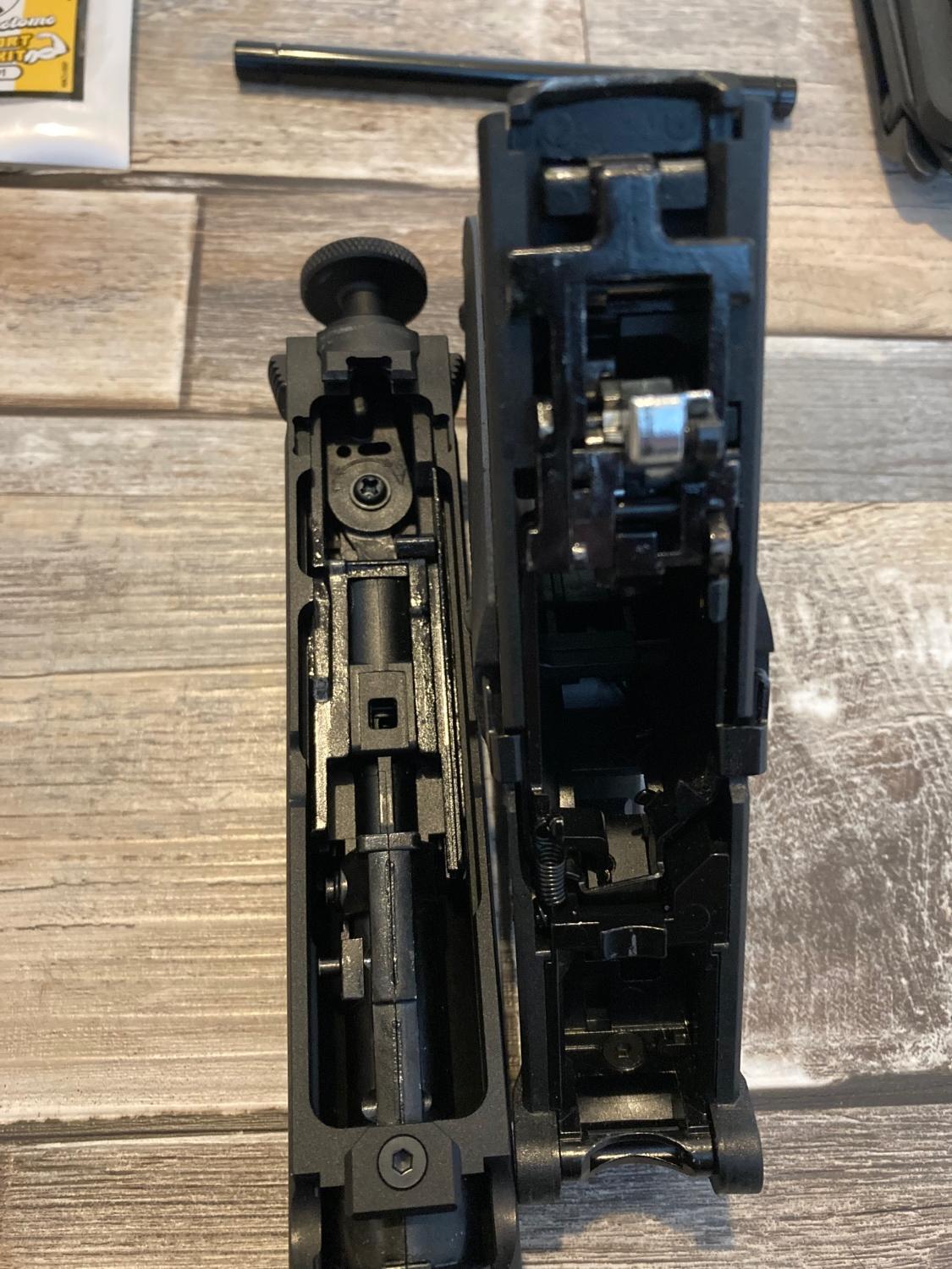 - CTM 22/45 lower with CTM trigger fitted (this trigger can be adjusted for pull by grub screws but o currently don’t have them fitted so as to let the pistol fit a CTM holster)