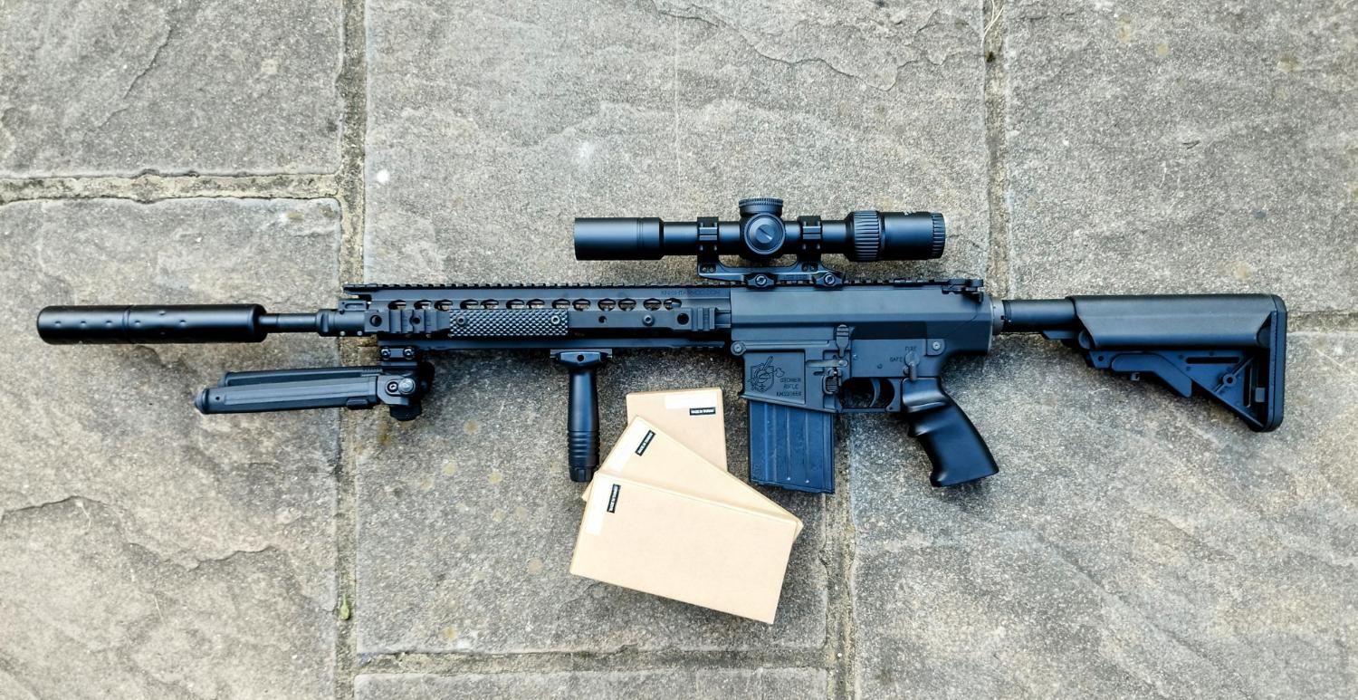 Here l have a new gbbr made by VFC, the carbine version of the SR-25 rifle.