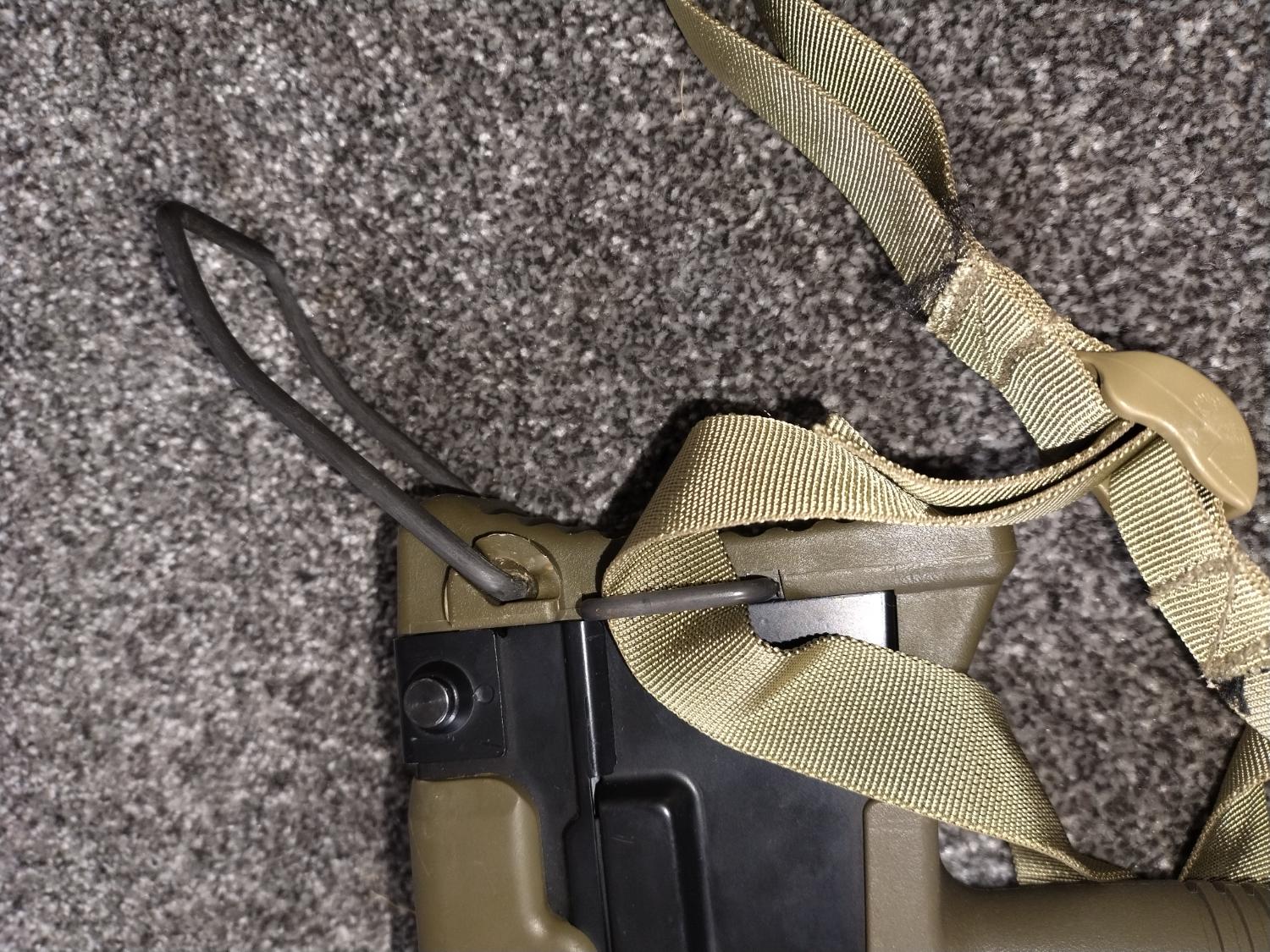 Includes sling, iron sights and replica SUSAT (with legs protector) and Tamiya-deans converter.