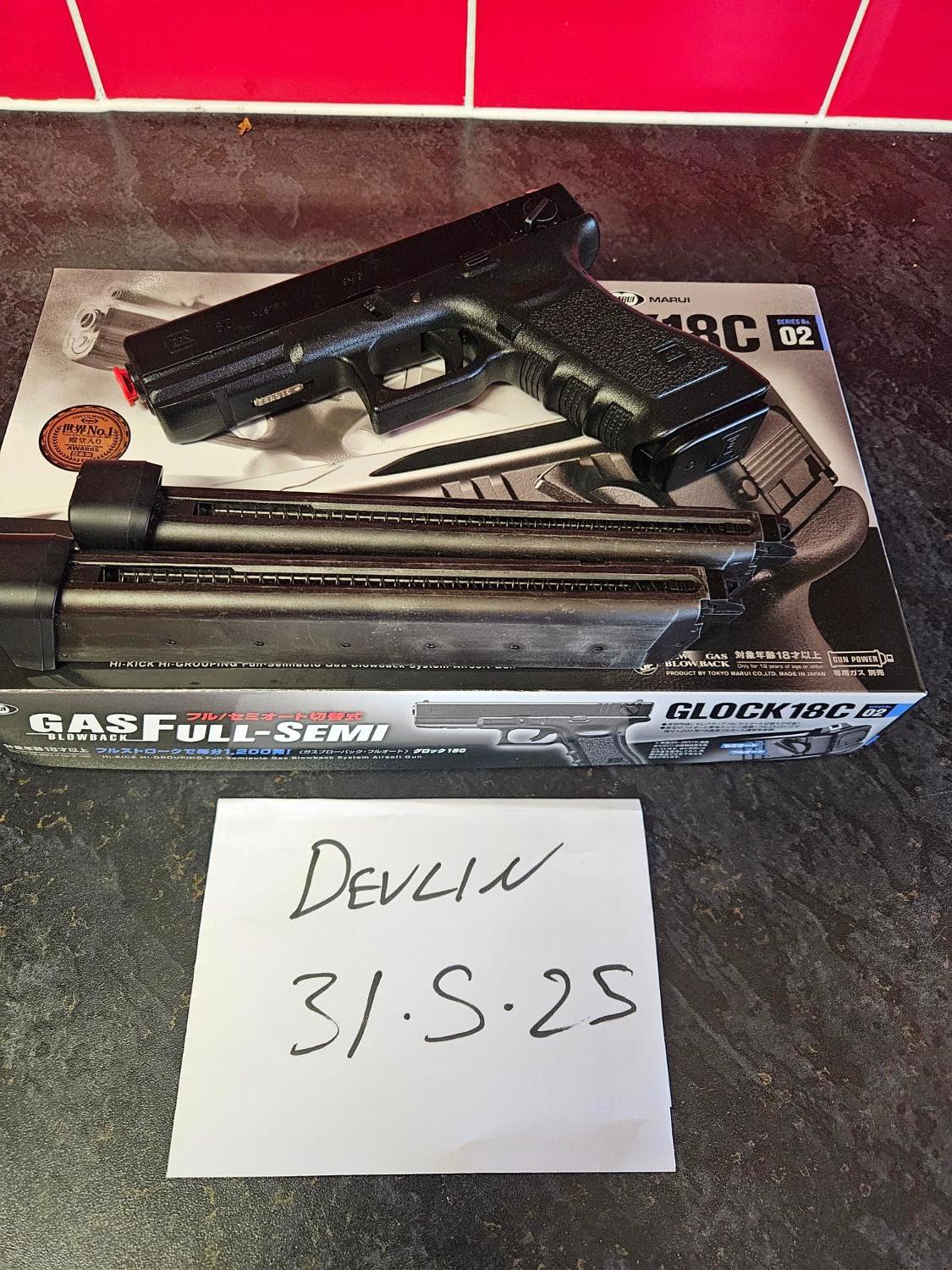 TM Glock 18c in good condition, comes boxed with a gen 5 mag and 2 50 round mags (one of which needs re-sealed).