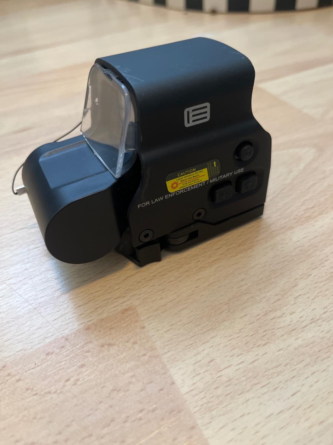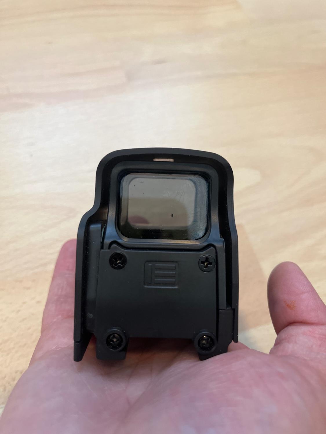 Unsure of the manufacturer, but this is definitely one of the nicer Eotech copies. Lovely anodised finish, few light marks but nothing major. Lovely trademarks including the embossed E on the rear and the qr code and made in USA Eotech sticker on the bottom.