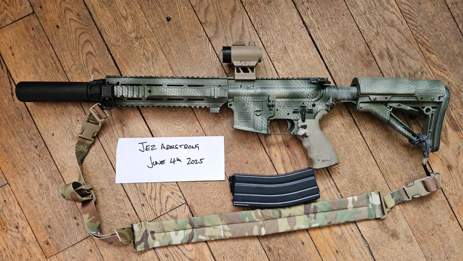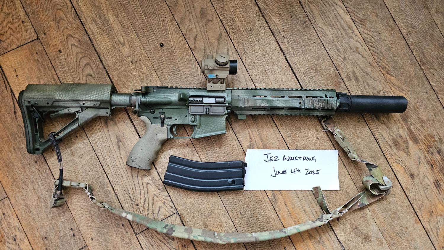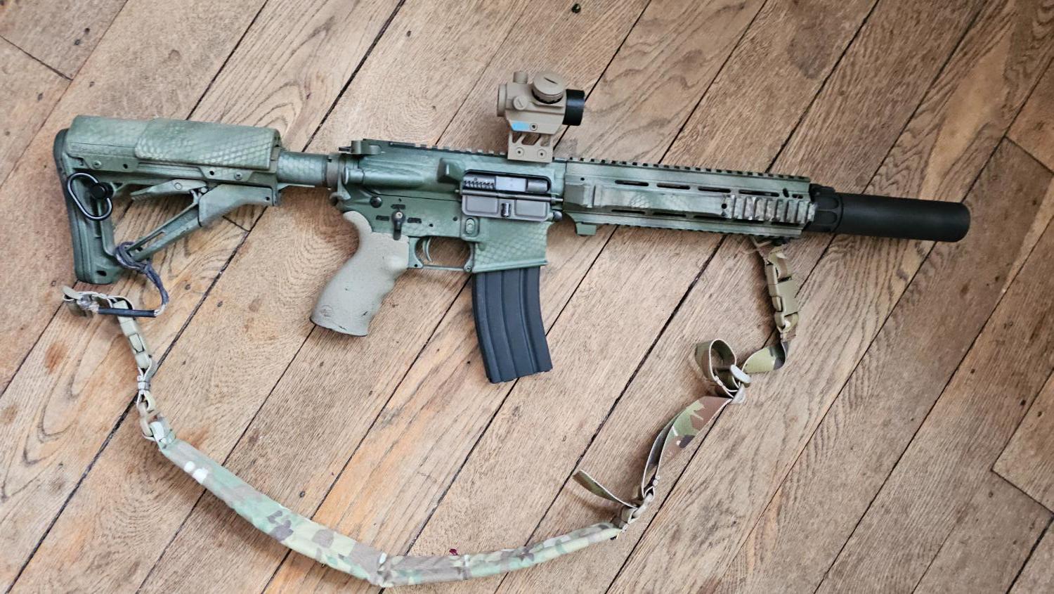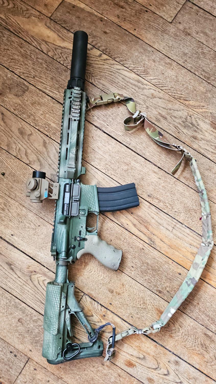 WE M4 GBBR L119A2 comes with my last stanag mag, it was originally a Hk416 but the body snapped so I moved everything into a Colt M4 body (which is why it has a HK bolt) and added the rail from a DE, it's got an NPAS also, ctr stock with genuine larue risr