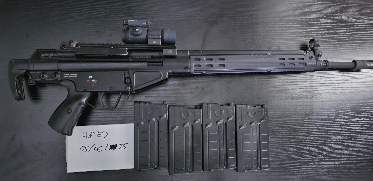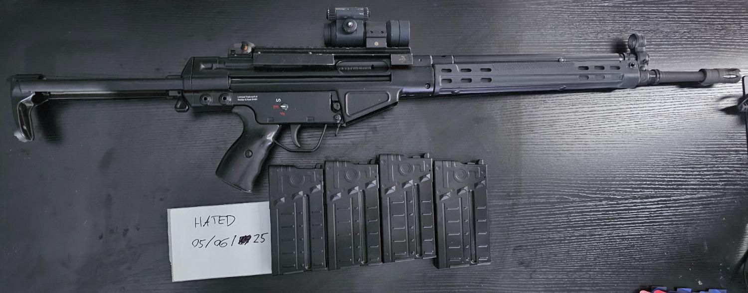 gun is a VFC G3 with 4 magazines, it features genuine G3 surplus furniture (handguard and pistol grip) as well as a genuine HK G3 collapsible stock that i modded to work with the vfc