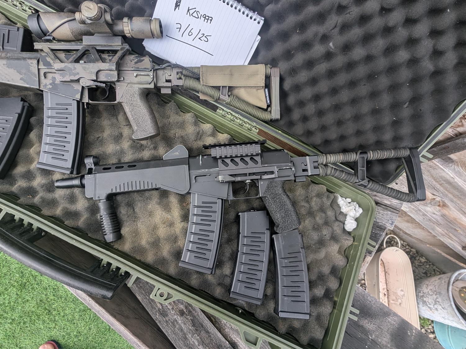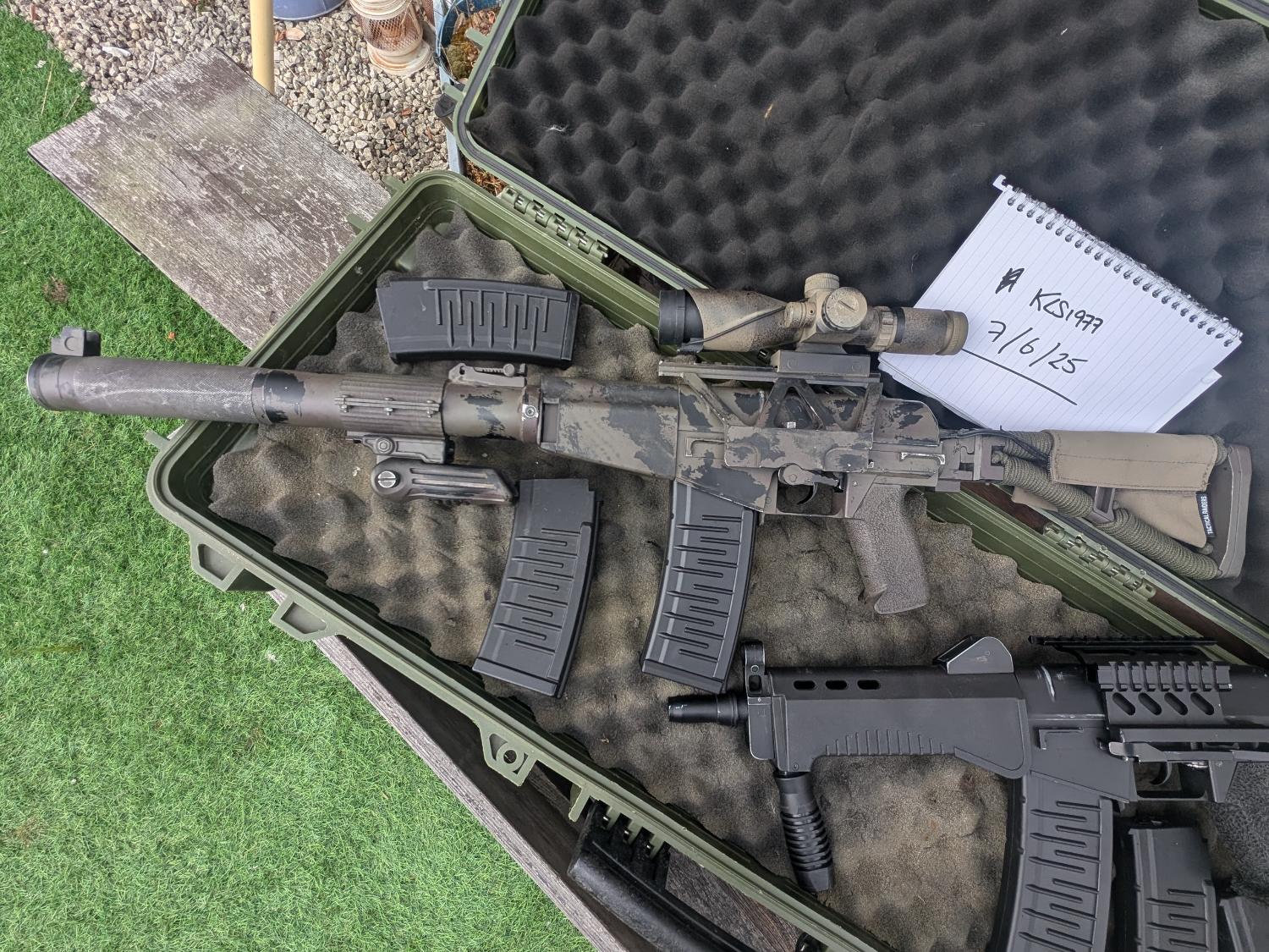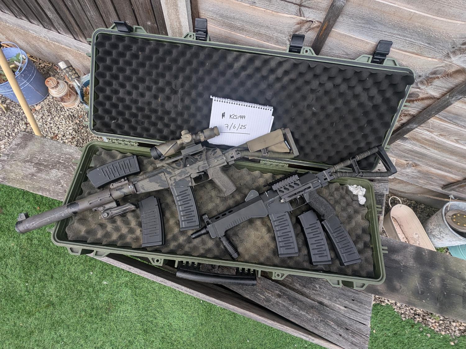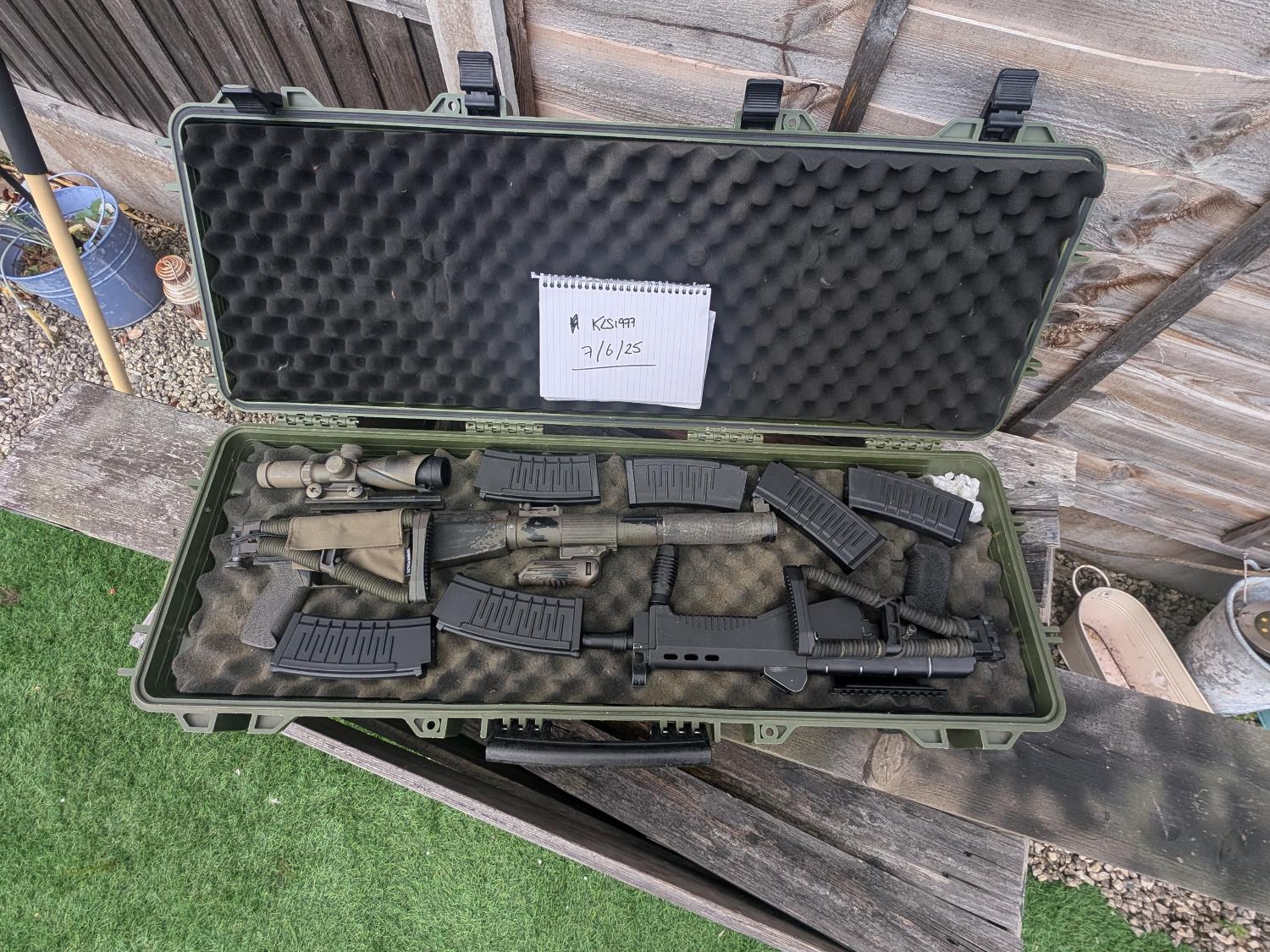 Come with all u see . Scope and side mounts/ grips. Six mags ( fit both and feed) and all in nuprol hard case