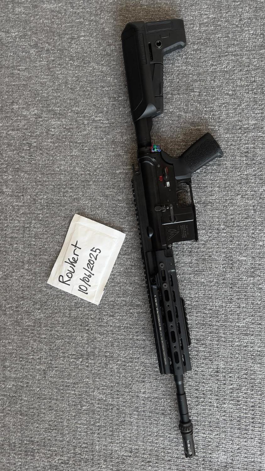 No magazines or battery, and the charging handle spring has gone missing.
