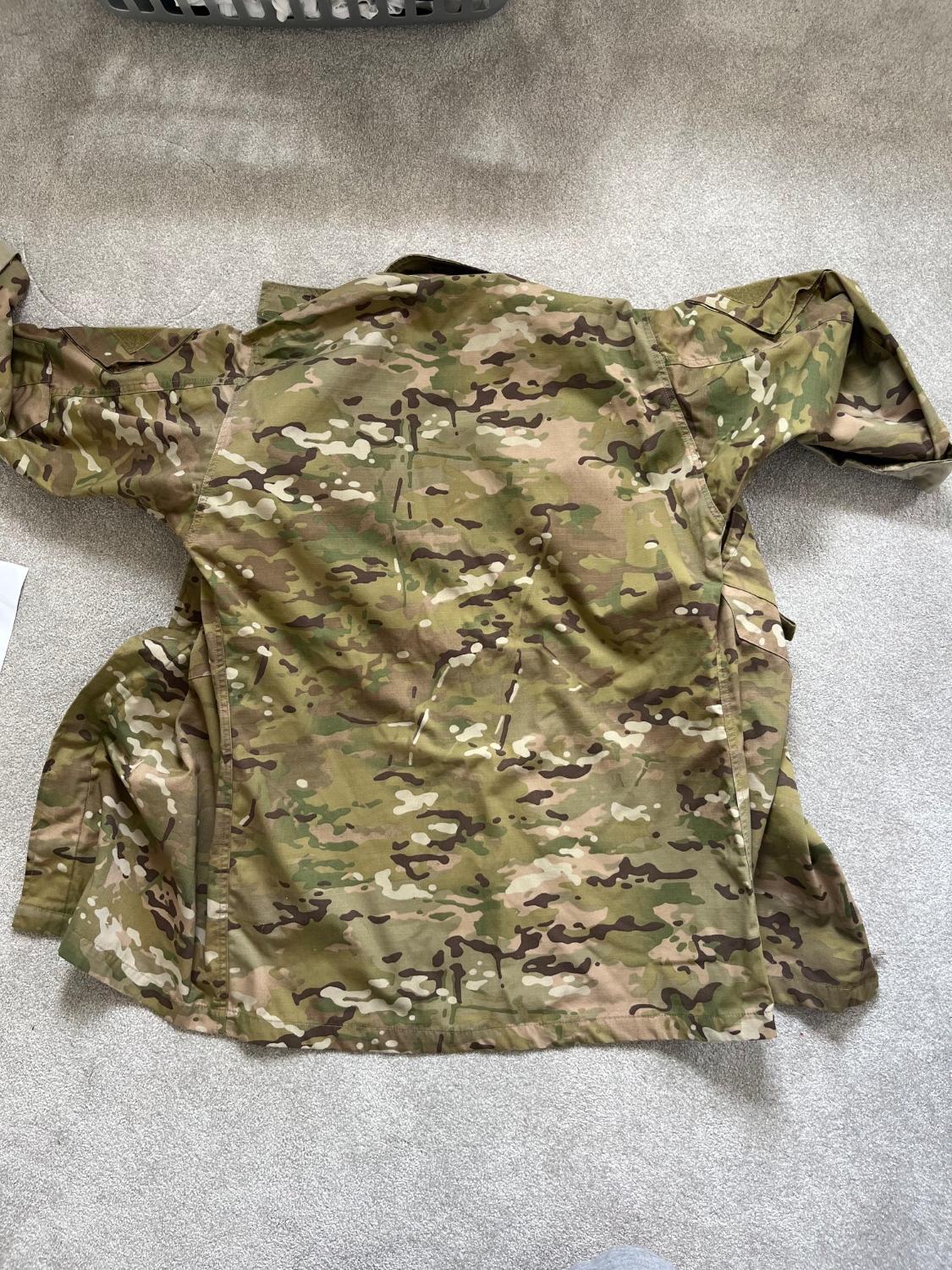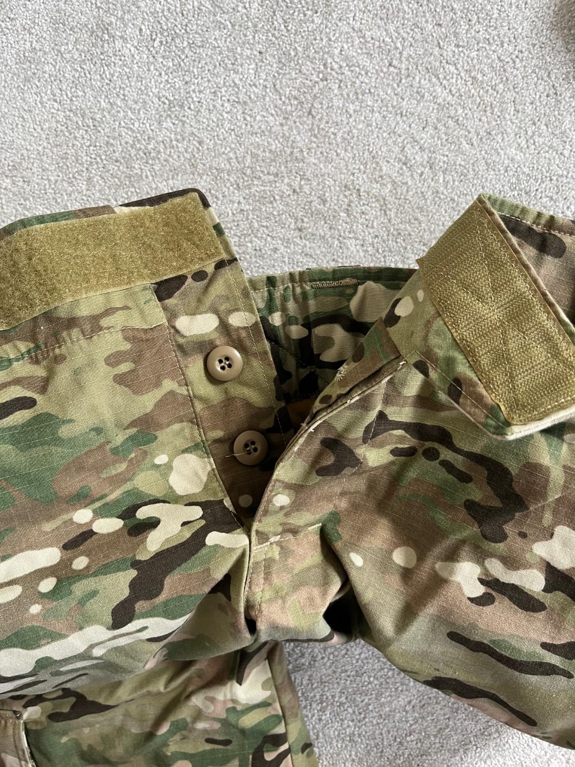 Both in very good condition with minimal use. No fading. Both are the “custom custom” tagged supply for UKSF. So for the pants they are similar to the NC pant with buttons for the pockets and zipper. Shirt has a zip and Velcro as well as buttoned pockets. The shirt has a name sharpied out this cannot be seen when worn.