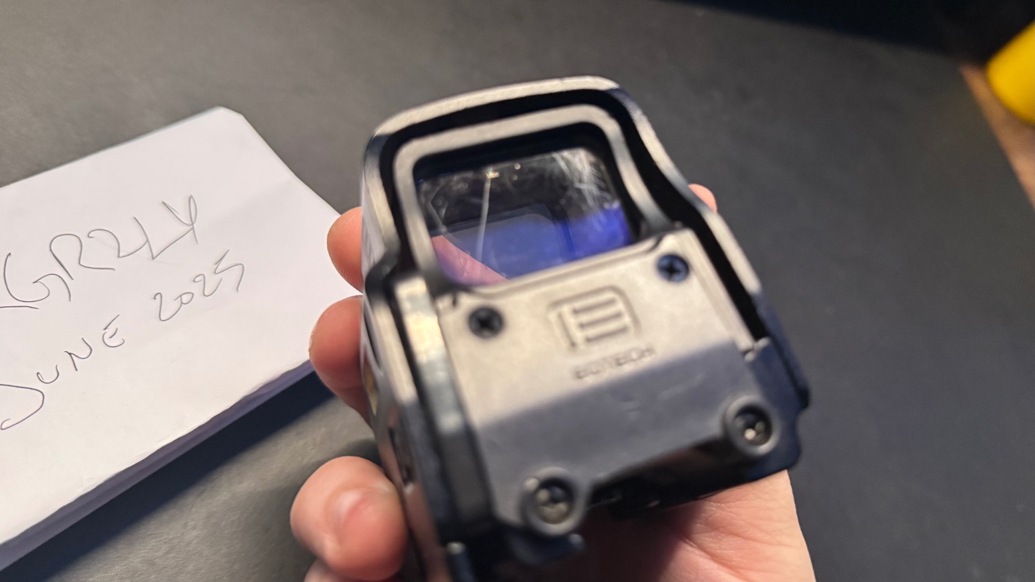 Repro Eotech 558 with green sand red dots. Very good quality. Has markings and trades. Good conditions, the glass has some scratches, but they are only visible at a certain angle and with light reflected on the lens, otherwise you would not notice them. Including a lens protector.