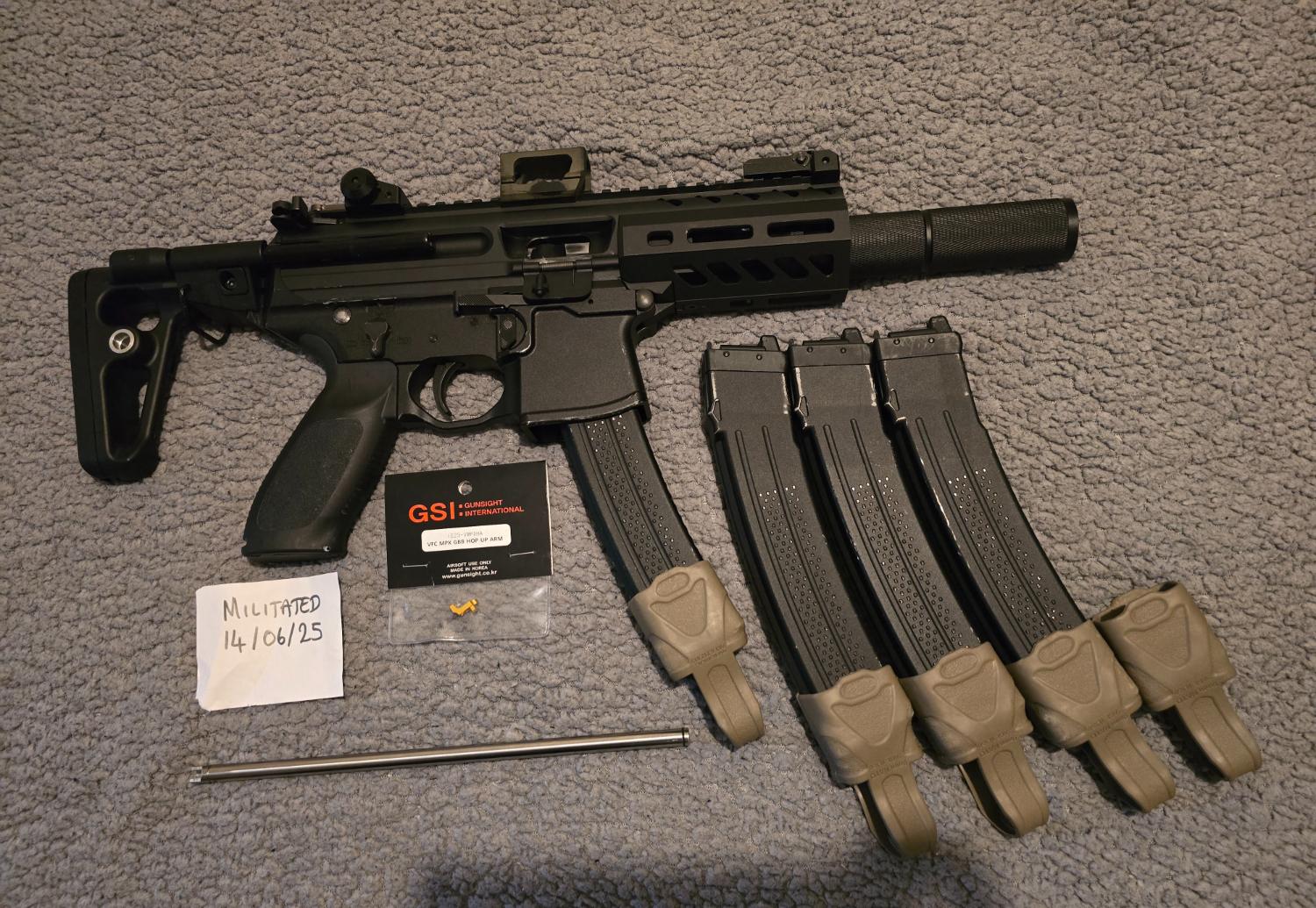 The 112mm inner barrel is flush with the handguard, so a flash hider can be used instead of the suppressor without issues.