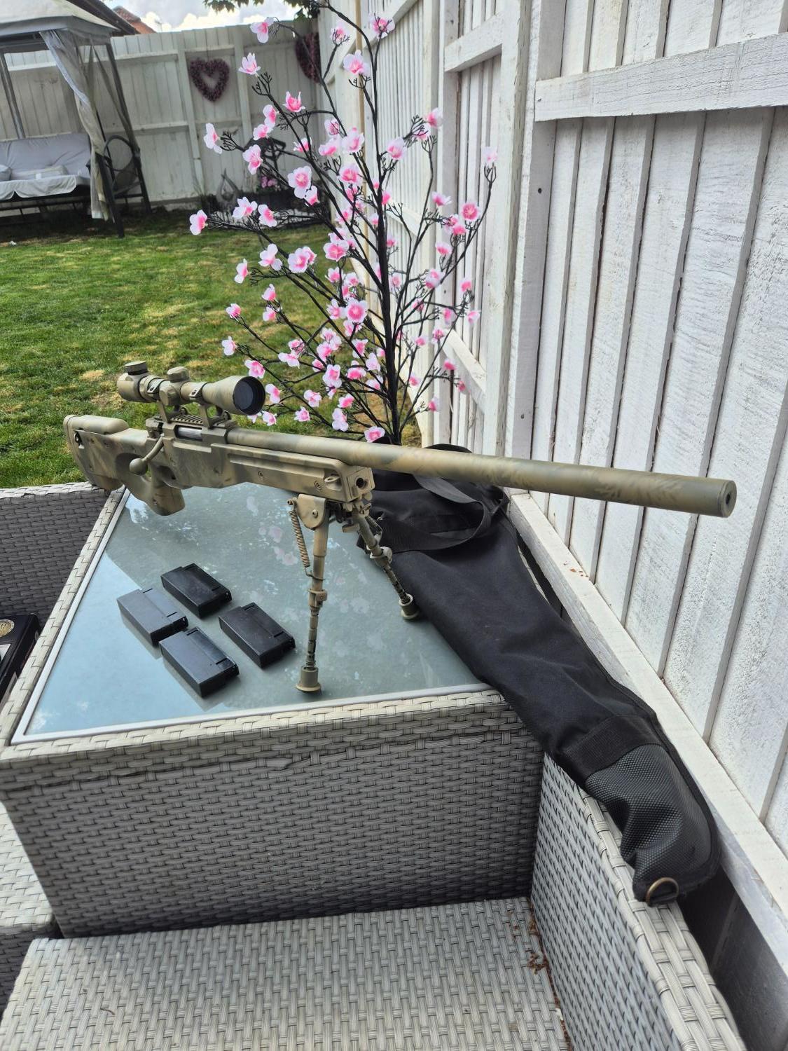Comes with scope, bipod, gunbag, 4 mags. Also have chest rigs, bbs etc if they're required to get you started.