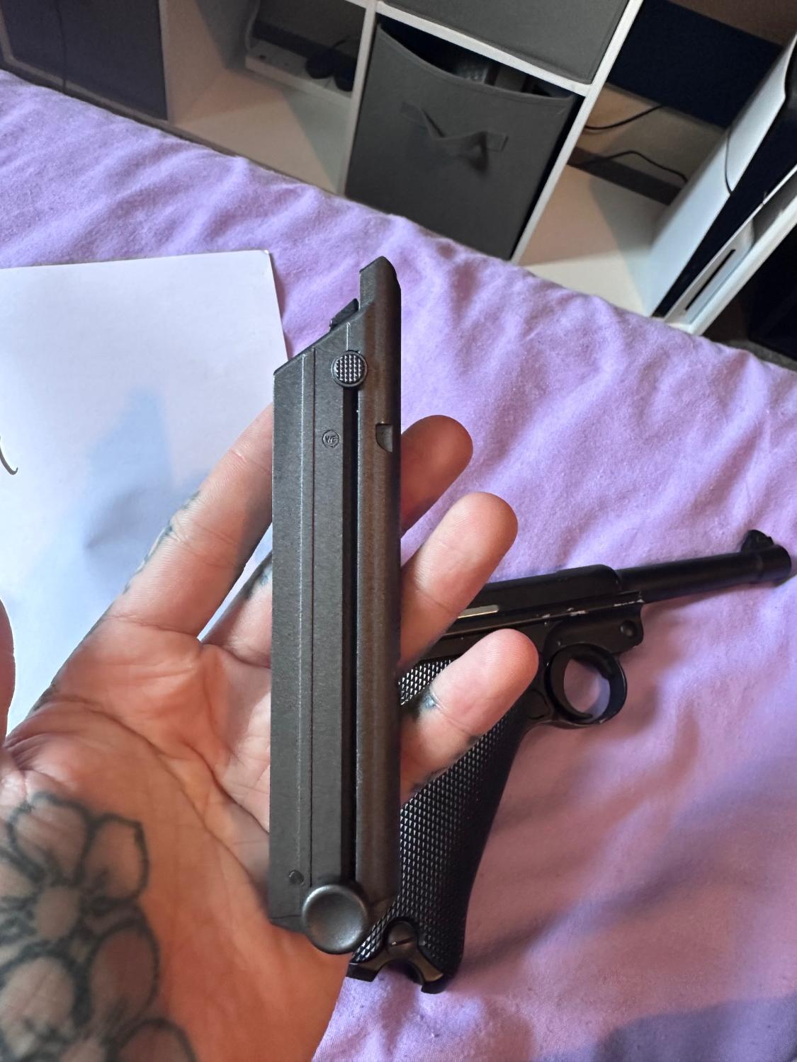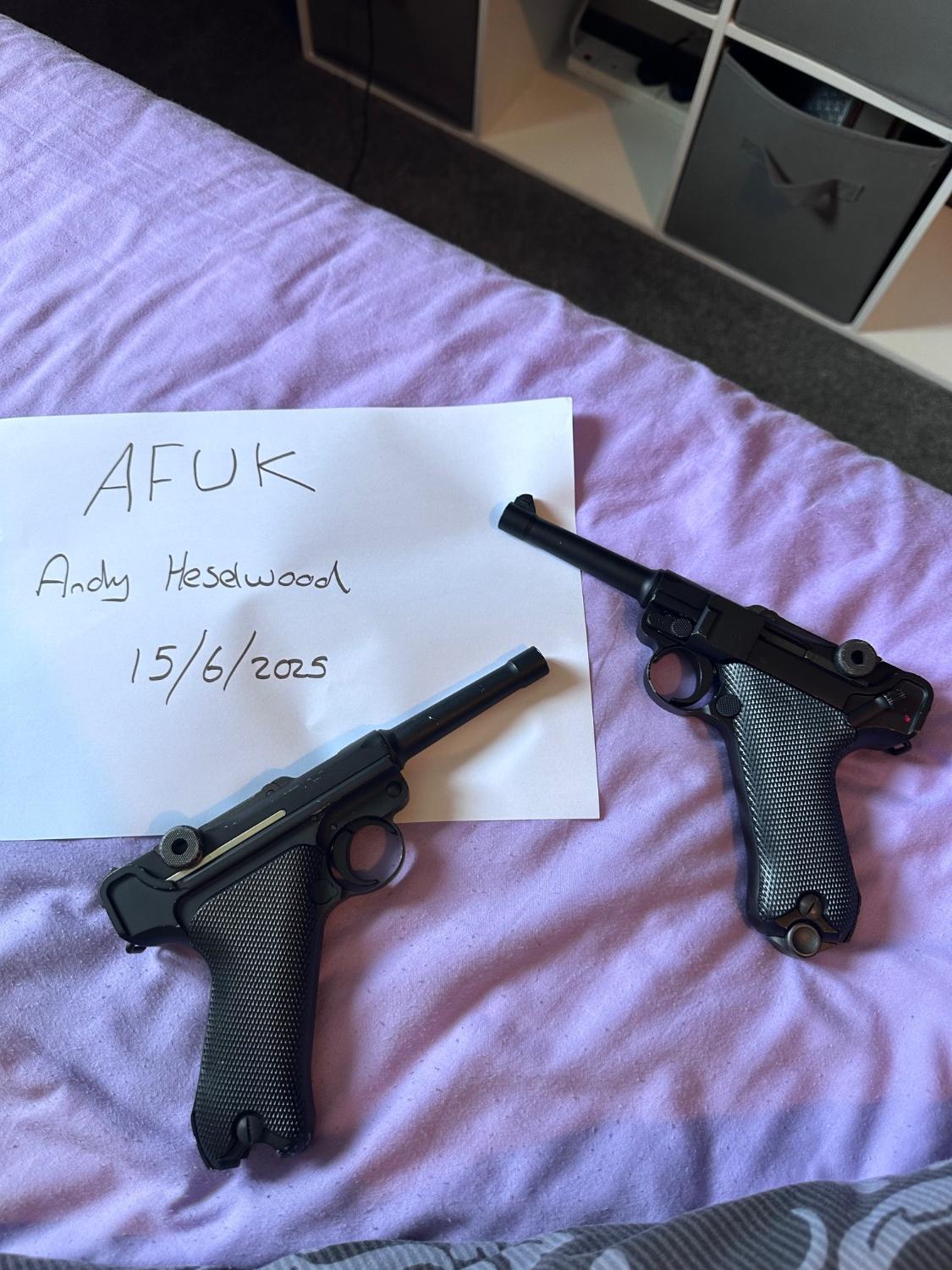 Hi everyone I have for sale 2x WE Po8 Lugers I got in a trade one is complete and has a brand new magazine never gased up and the other has no magazine and no front sight that’s all both are heavy pistols and great feeling pistols wanting £55 for both all in they work and shoot payment via PayPal any more questions text me on 07530689244
