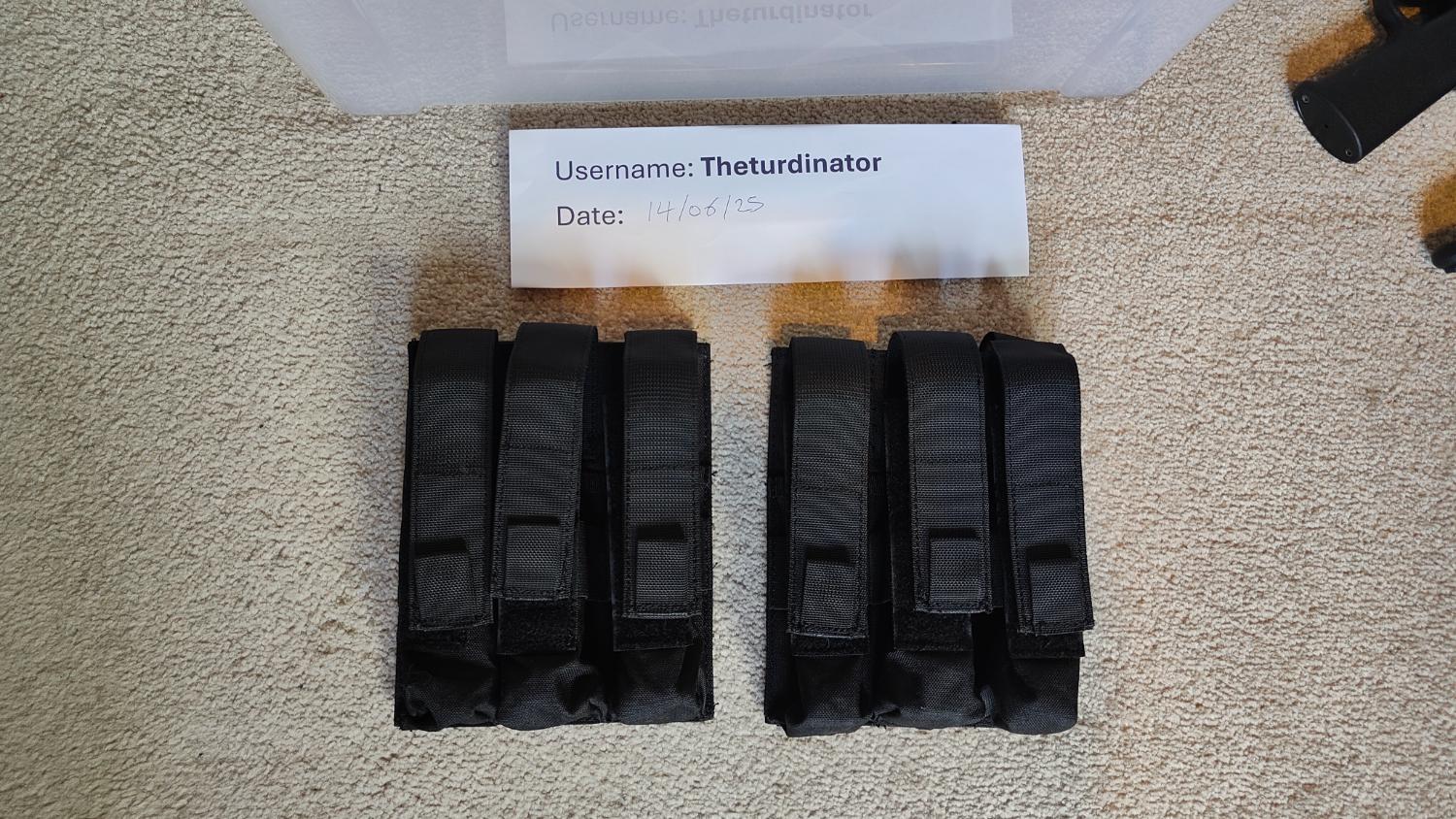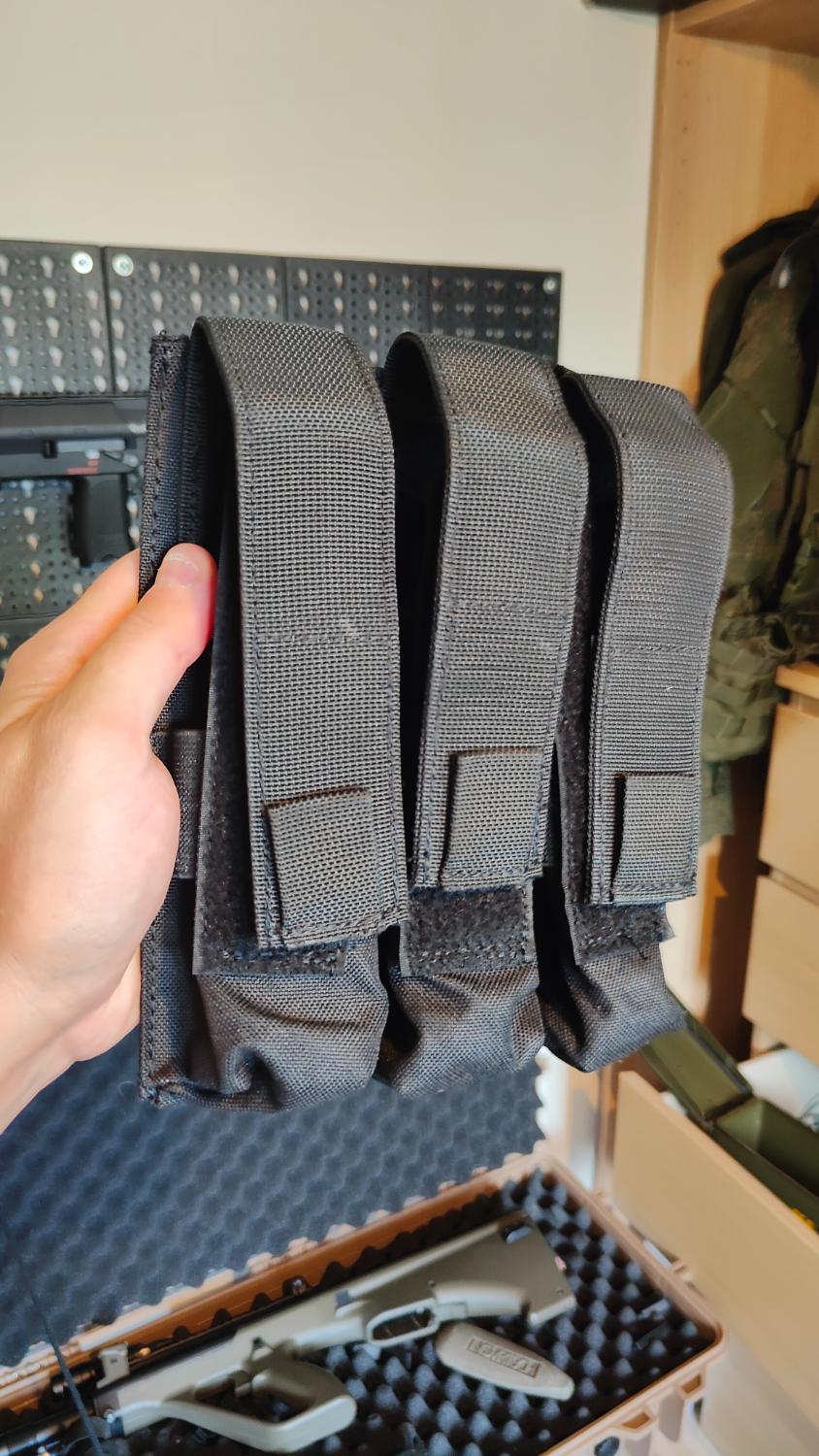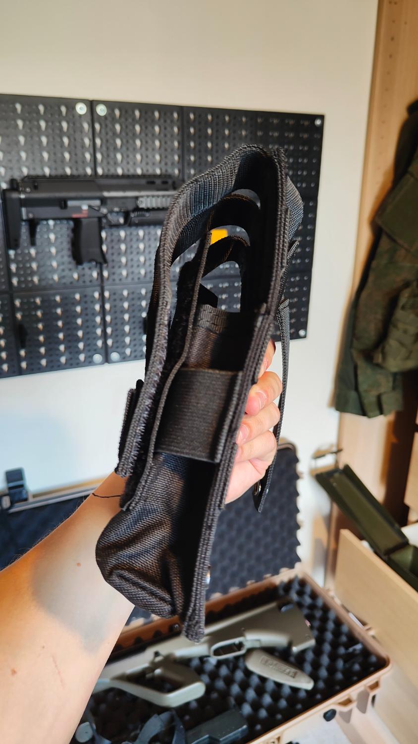 I'm selling 2 x molle mag pouches in black. Can hold MP7 MP5 mags.