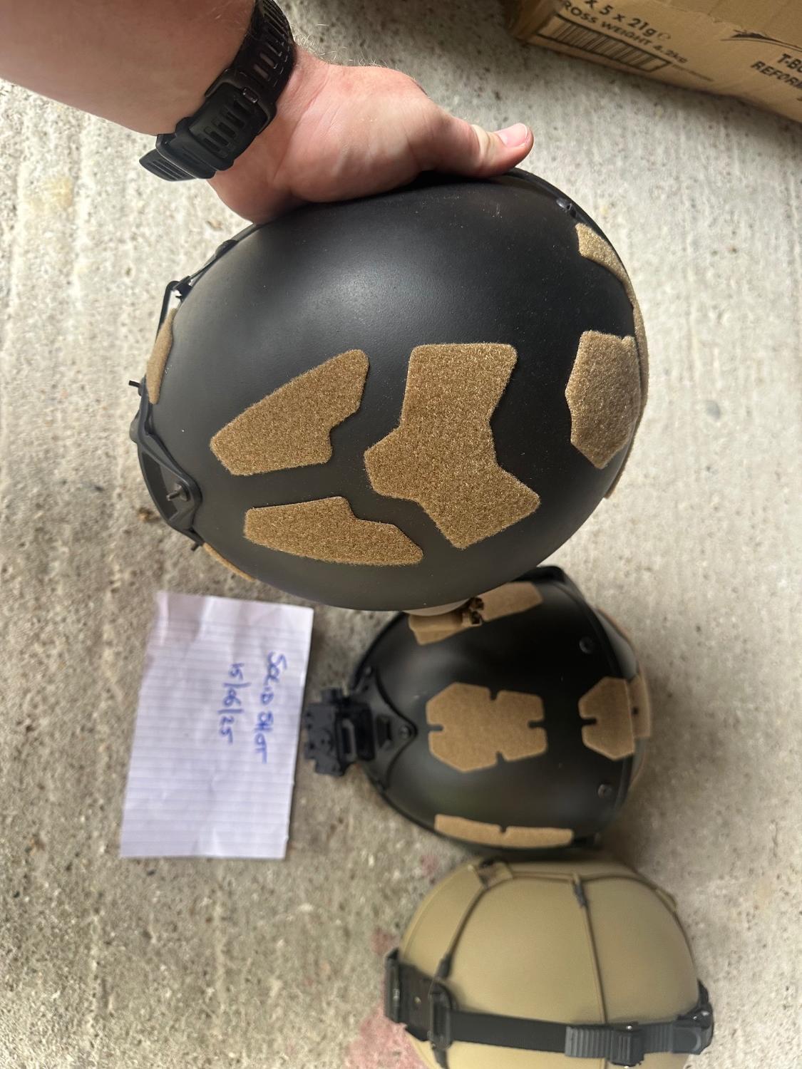 1 x Emerson MICH 2001 - Black - comes with dust goggles (NOT AT ALL RATED FOR AIRSOFT!! Nerf warzzz at best), Repro metal OpsCore NVG shroud, Element HL1 light, Repro GBRS night vision retention straps. £50