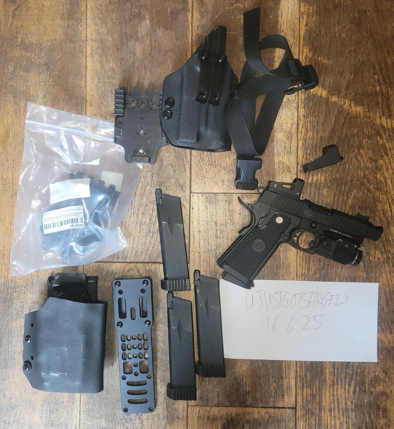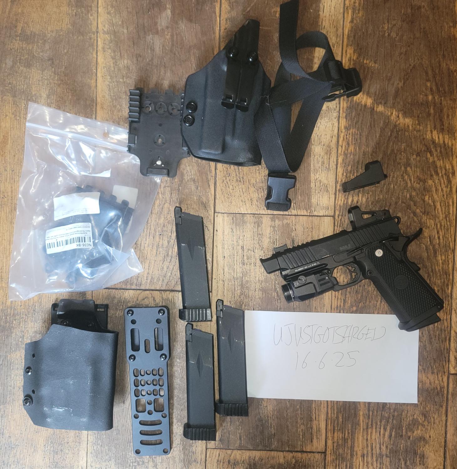 Pistol in perfect condition, used on a day for a concealed loadout, works perfectly. 4 gas mags in total, all gas tight. It comes with a clone shield rms, which turns off when the shroud is on top. Has a kydex concealed holster. A kydex own holster, clone qls, clone gbrs mount, and clone tlr 7a torch, again works perfectly. £200 all in posted, no trades
