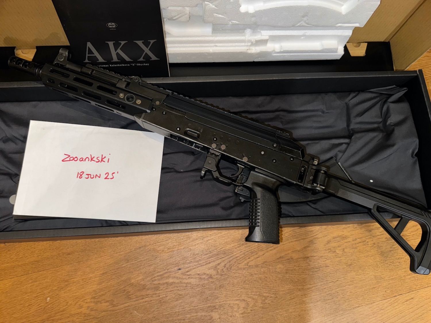 TM AKX. Used but in good condition. Standard set-up and boxed with single gas tight mag.What you see is what you get.? Never let me down and a beast of a GBB, but time for a change! 275fps on a .32 according to my chrono yesterday. Pickup preferred from CB23 or Blackstone CQB Huntingdon on Sunday  As I can't be bothered to post then £360 collected!