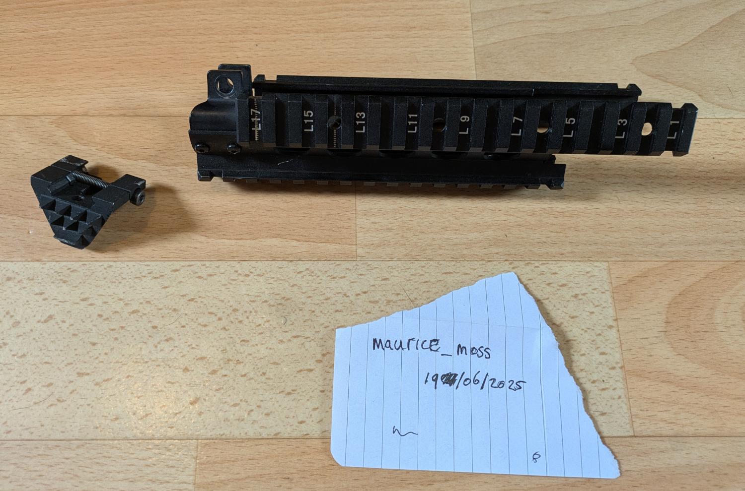 I'm not sure what brand this is, possibly JG or CYMA. I used it on a GG top-tech MP5, the clip-like fitting at the rear is adjustable and can be moved to a couple of positions.