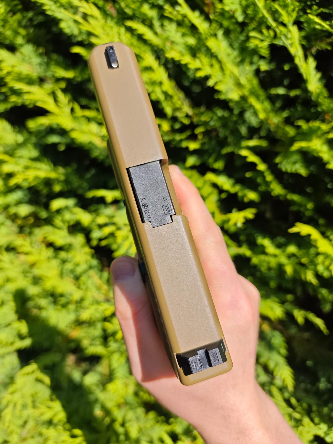 It's spent most of its time in the FDE Glock (reproduction) case included in this sale, in a cupboard. I'm only selling as I haven't skirmished in a long time now and have whittled my collection down to a couple of pistols for plinking.