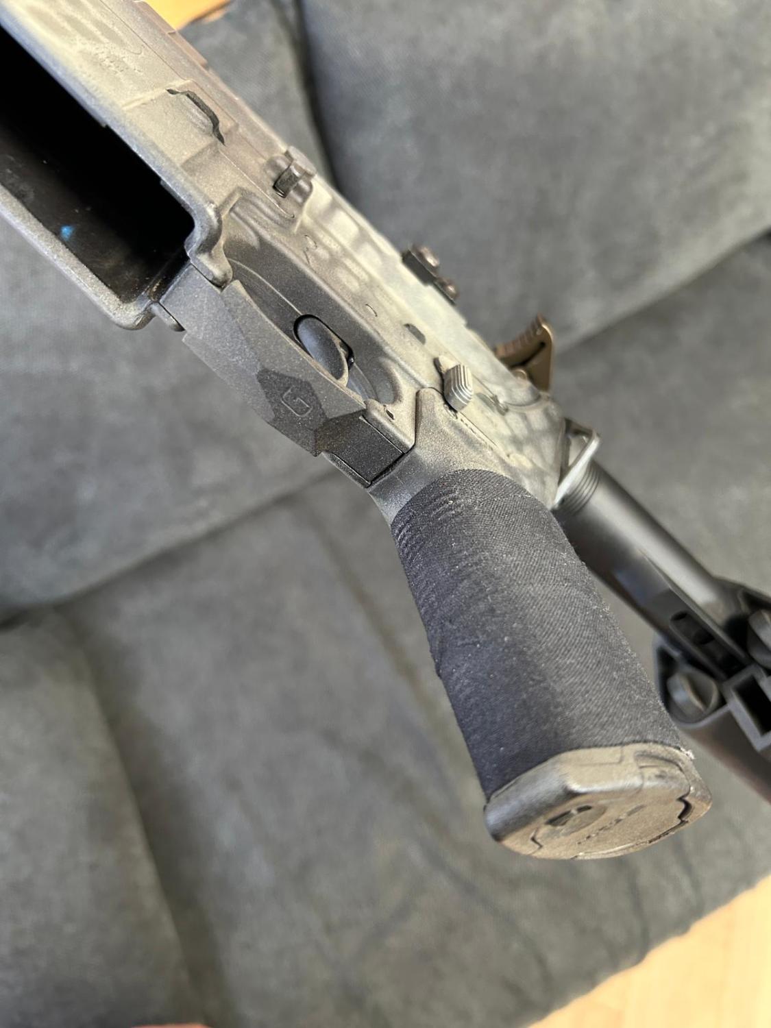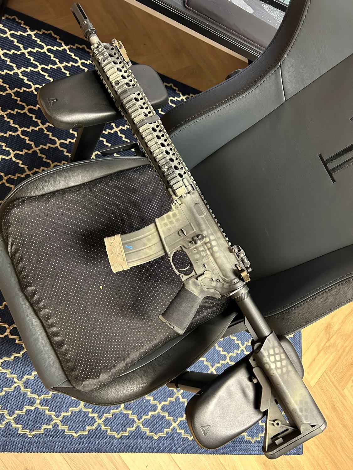 Light weight AU buffer weight, flamingo bucking, omega nub, crazy jet barrel. Angry gun BCM bolt + nozzle with NPAS. G charging handle and trigger guard, rs magpul grip, HAO anti wobble pins & bavtac titanium zet plate so it never fails to lock back on empty.