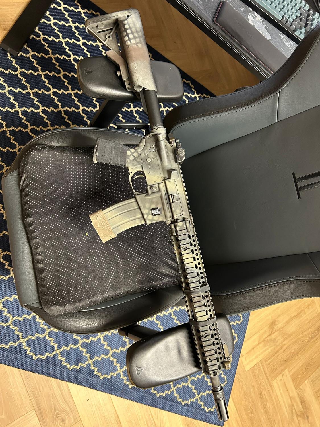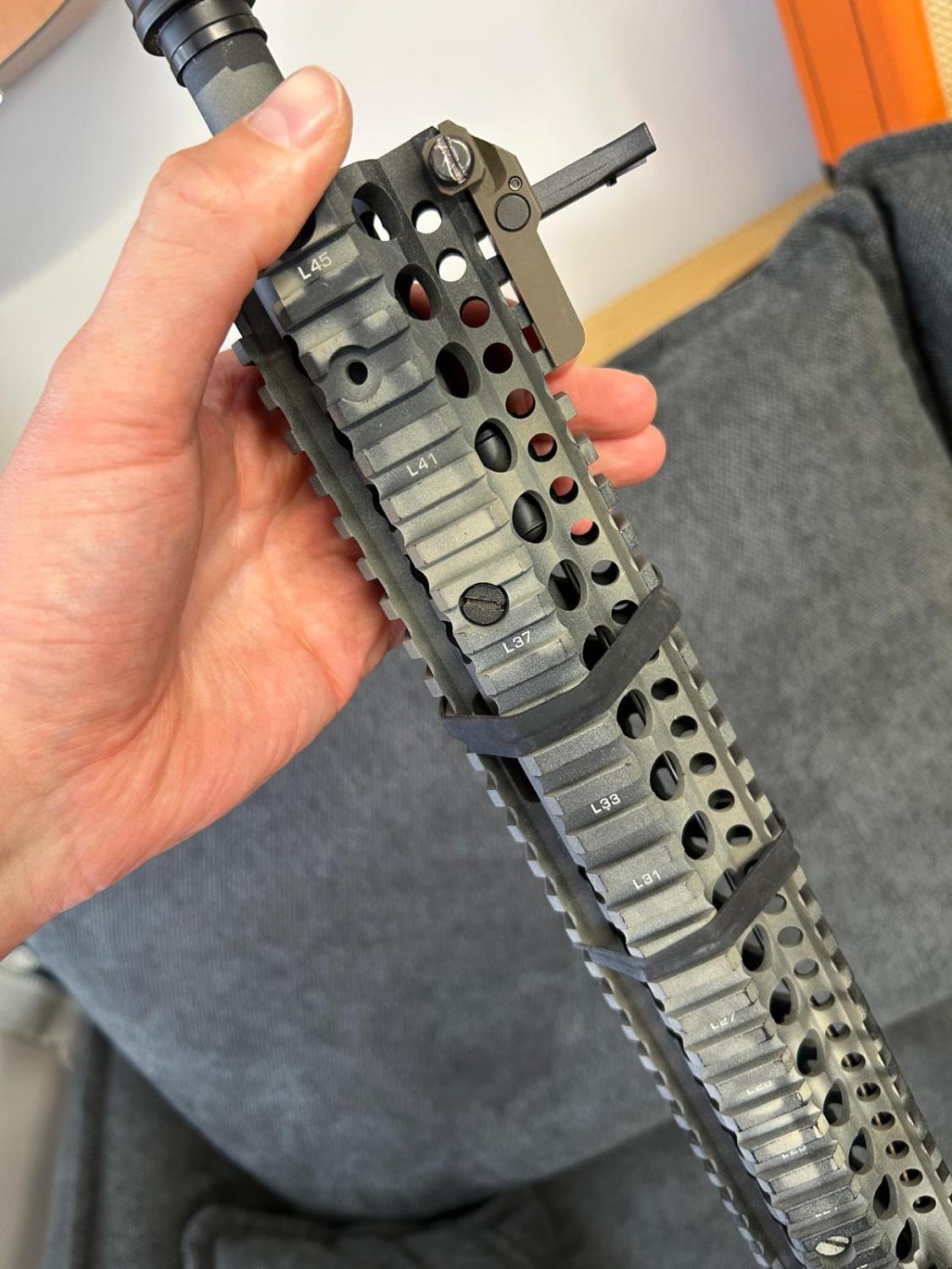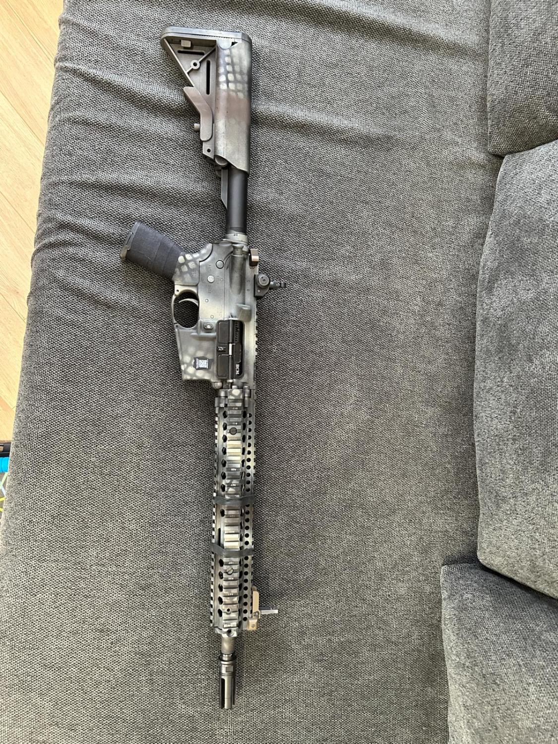 This Block 2 has a 14.5 steel outer barrel and a mad bull block 2 ris. I drilled out the mad bull rail to fit a gas block/tube (not the best job but hidden in the nut so doesn't matter, just wanted to look of the gas tube for realism.