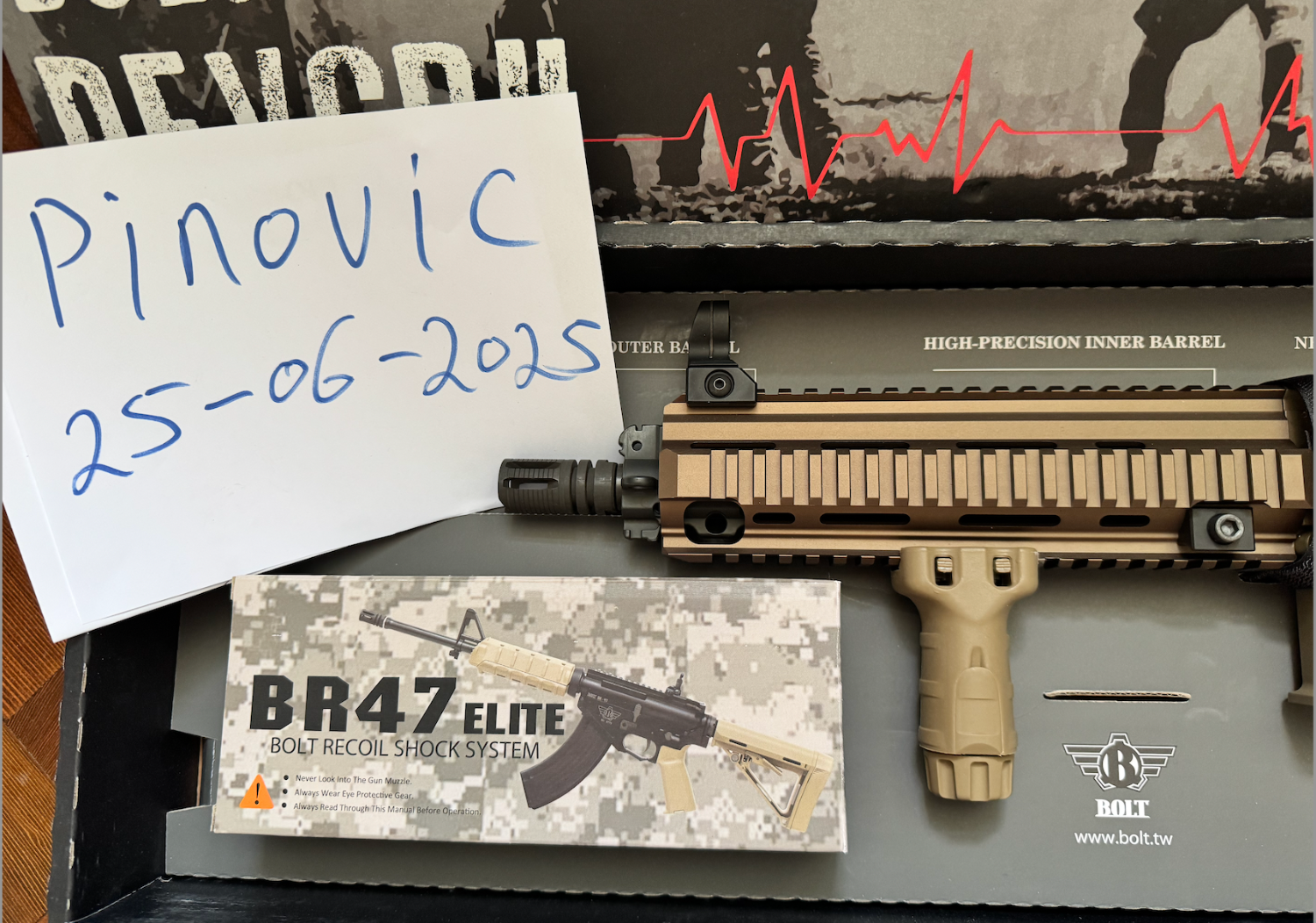 I connected a battery just to test the recoil — and the kick was seriously strong. The rifle has never been fired, and the magazine is still sealed in its original packaging.