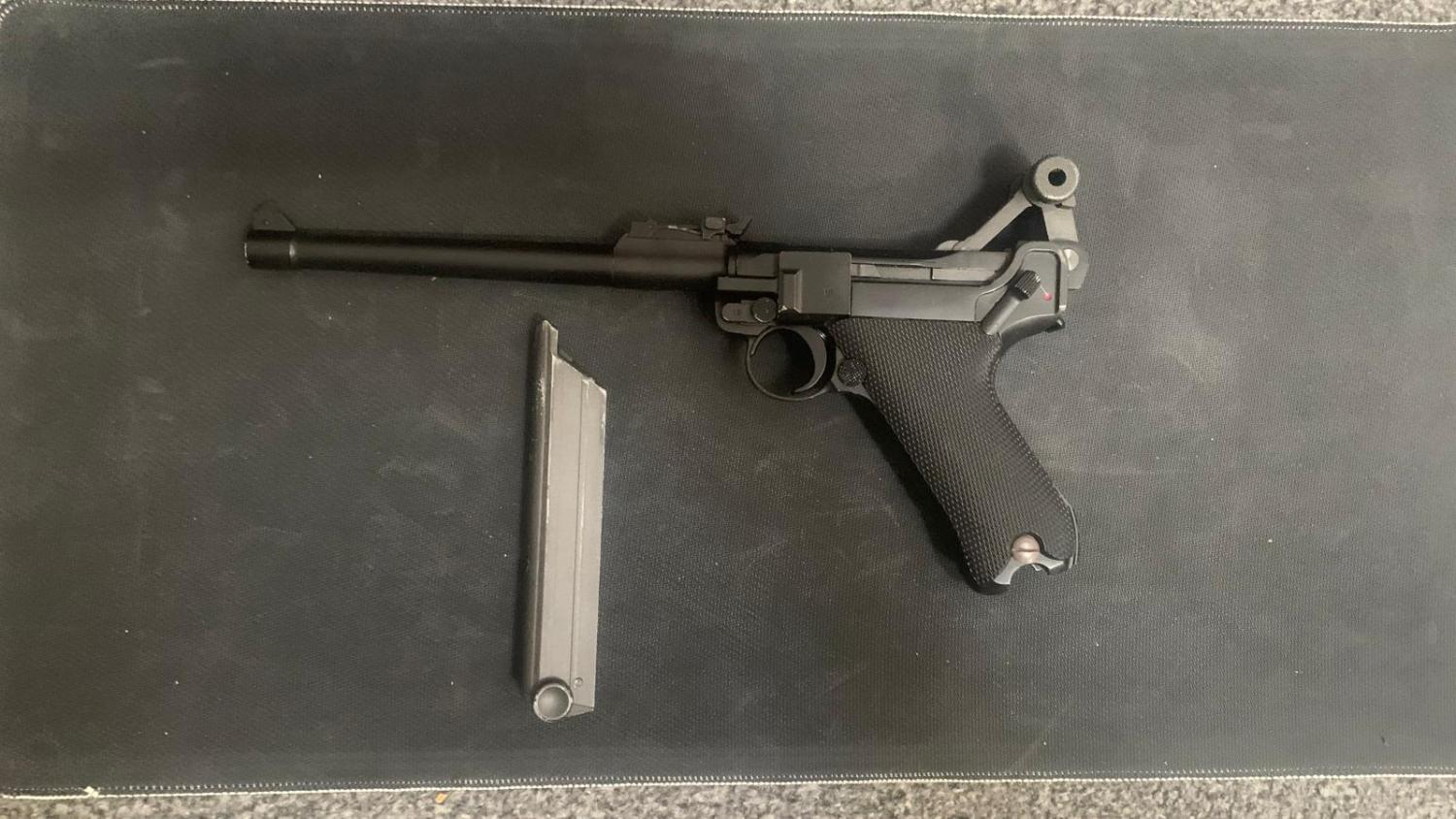 It works just like the real gun, with the toggle action function that goes back and upwards for each shot, and locks open when the mag is empty. It shoots at around 310FPS on green gas and using 0.2g BB pellets.