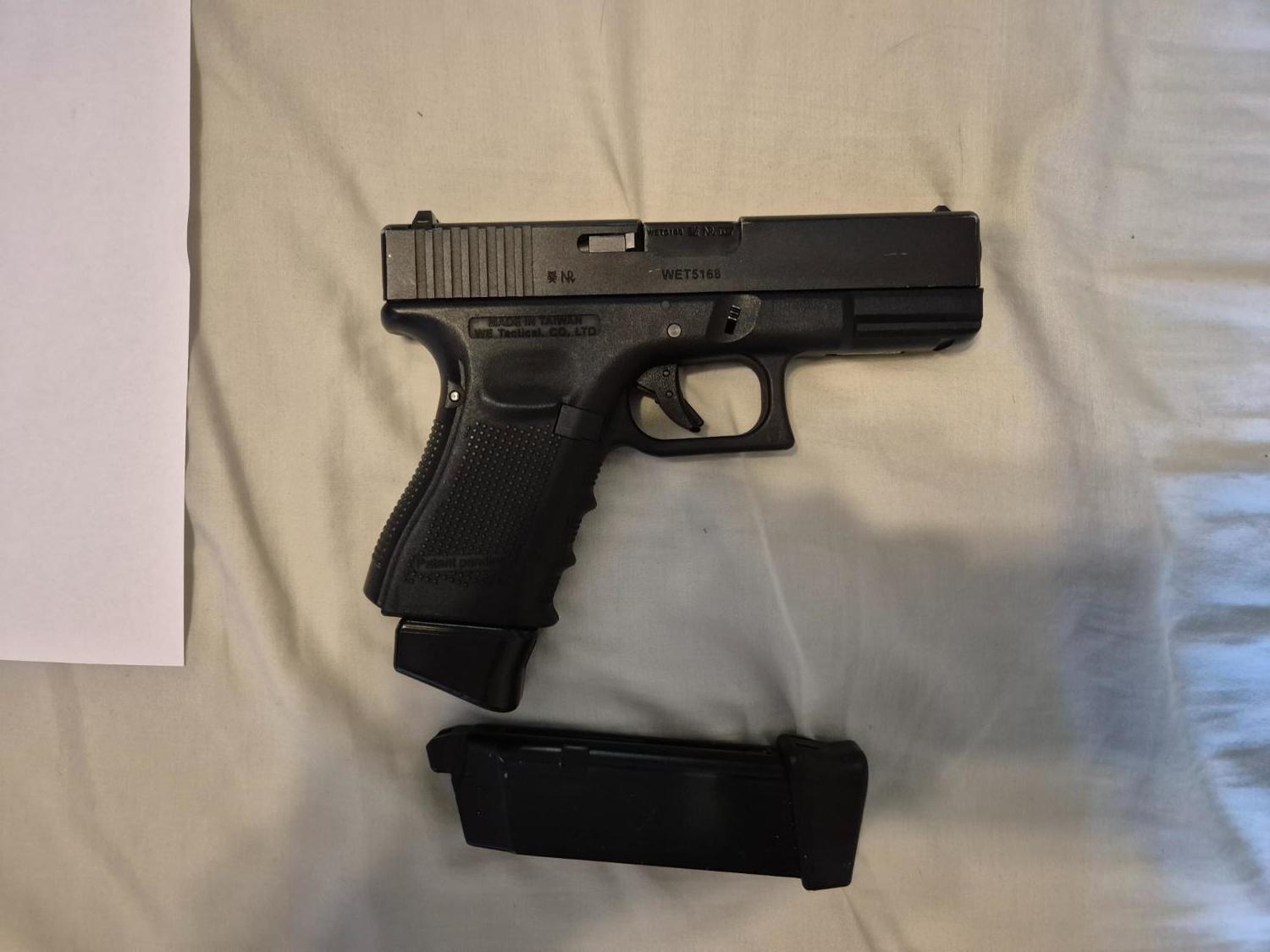 WE Glock 19 with two mags. A bit worn but functional. Having a clear out to make way for impulse buys!