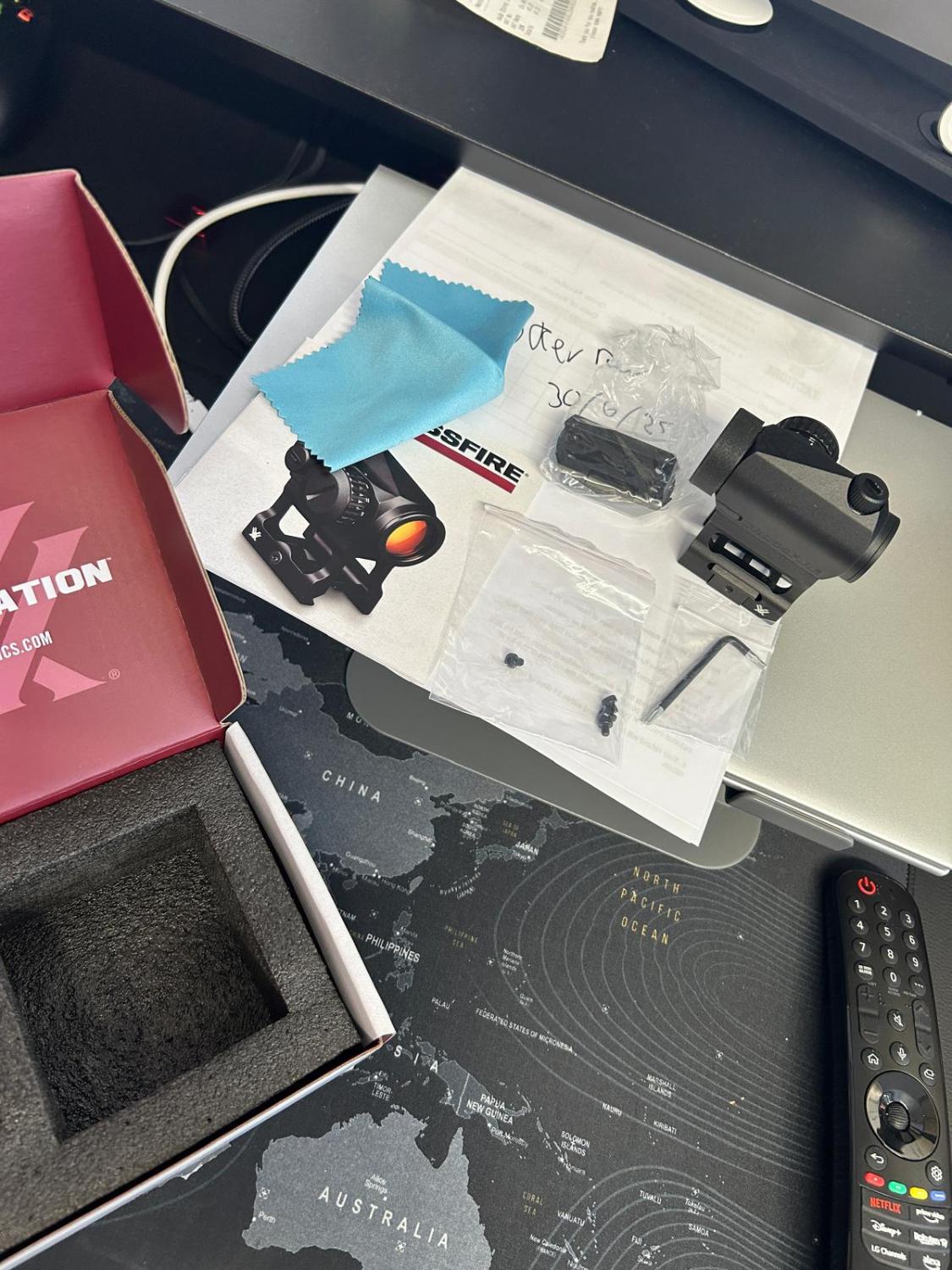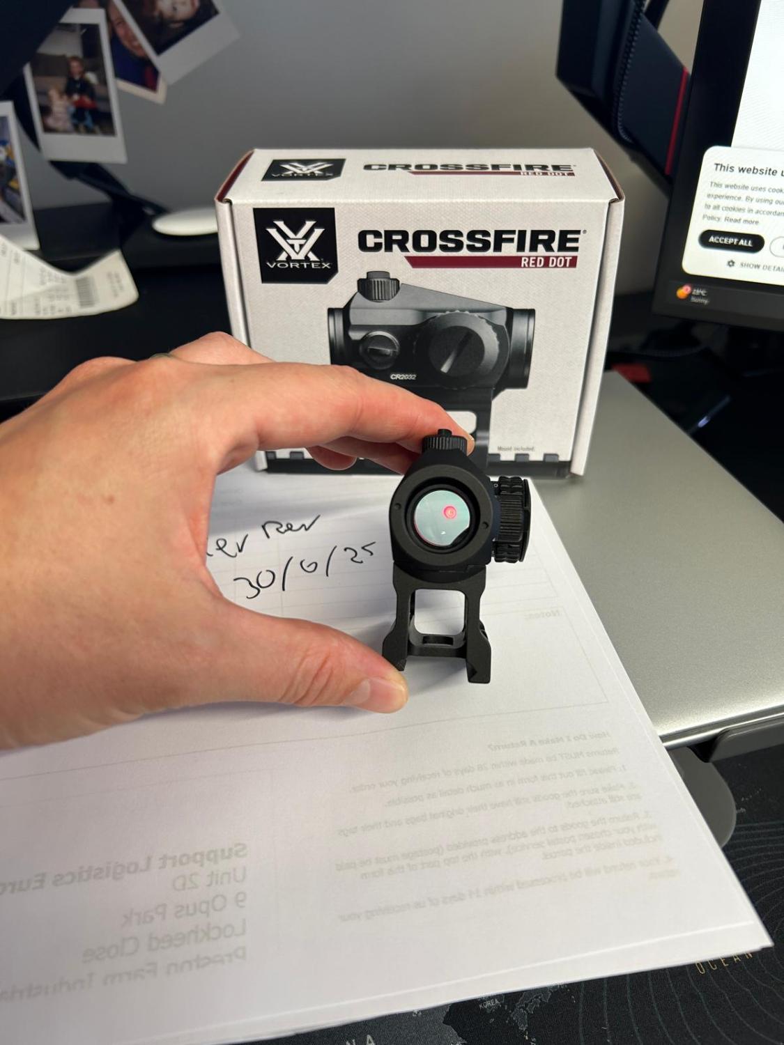 Solid red dot for real steel shooting, everything comes in the box as if new and with a £6 red dot engineer lens protector for the front.