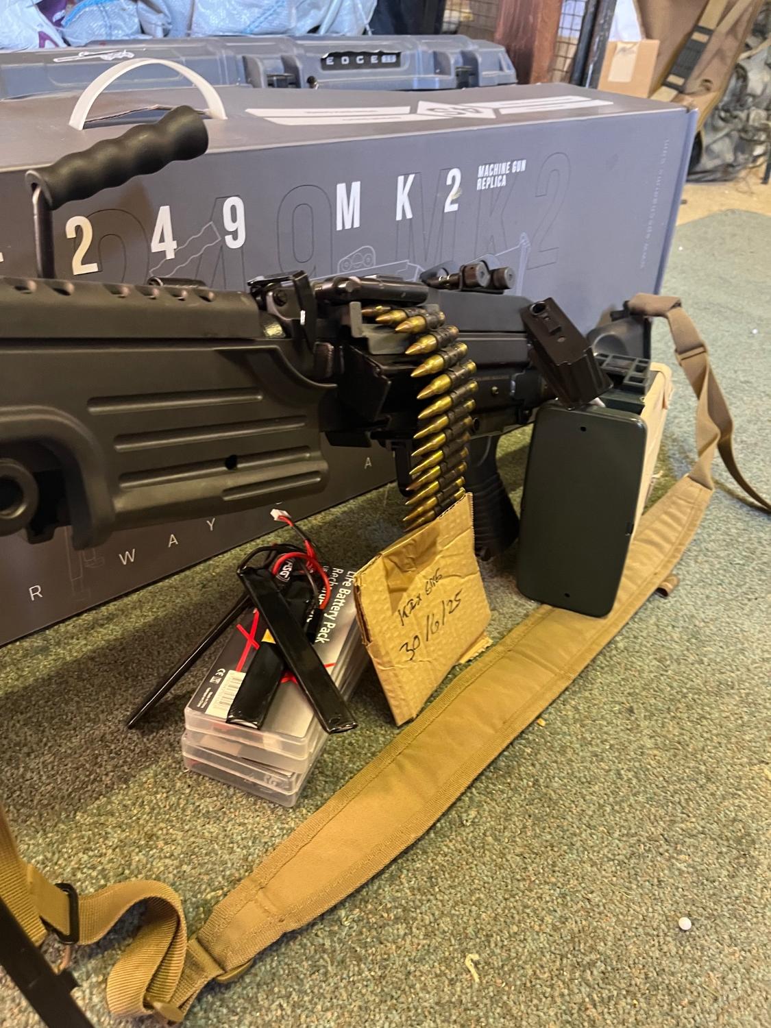 Listing is for a Specna Arms EDGE M249 SAW w/upgrades. Fully functional around 310 FPS shooting 40m range currently.