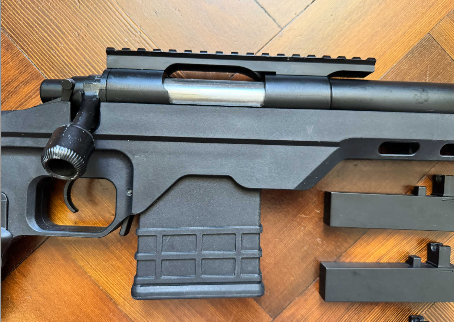 This airsoft model is based on the Russian Orsis T-5000 bolt-action sniper rifle used by the FSB and FSO.