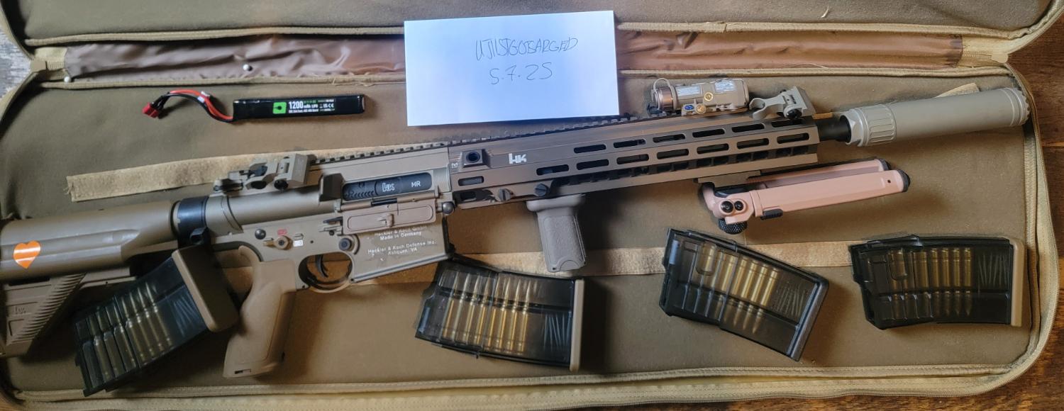 Hey, selling for a friend. Vfc Umarex Heckler & Koch M110A1 SDMR AEG. Used for 1 game so still in perfect condition. Locked to semi via stock mosfet. 390fps and fantastic range with a 0.32g bb. Comes with 4 mids, grip, clone magpul bipod clone correct suppressor (crusader is the make) somogear ngal with clone hotbutton. Will come with 1 battery as well the gun bag, do have the original box as well if needed. The gun has the correct real steel markings, not Umarex. £700 let us know if you have any questions