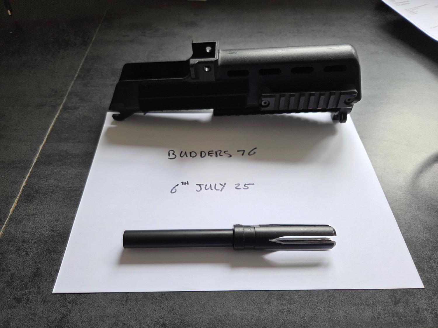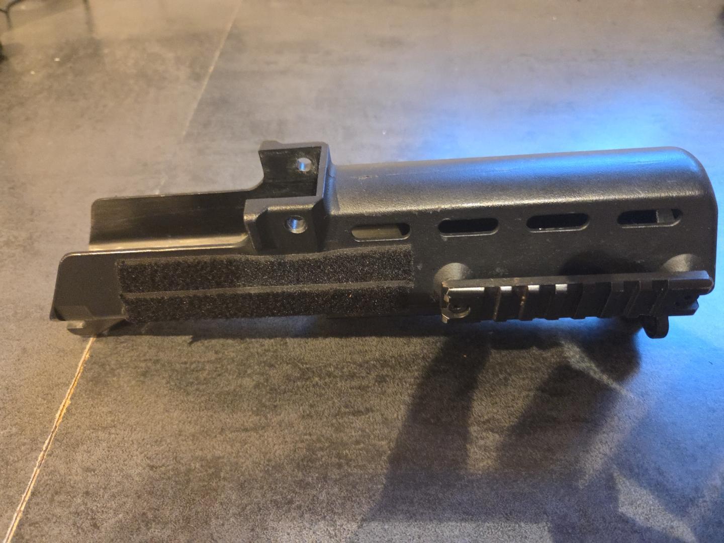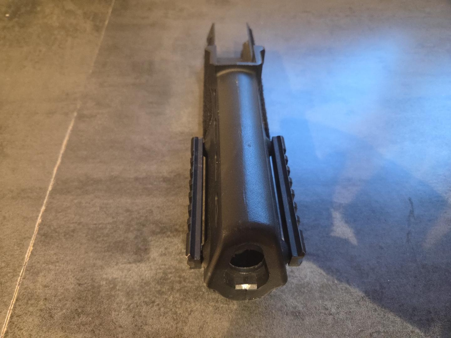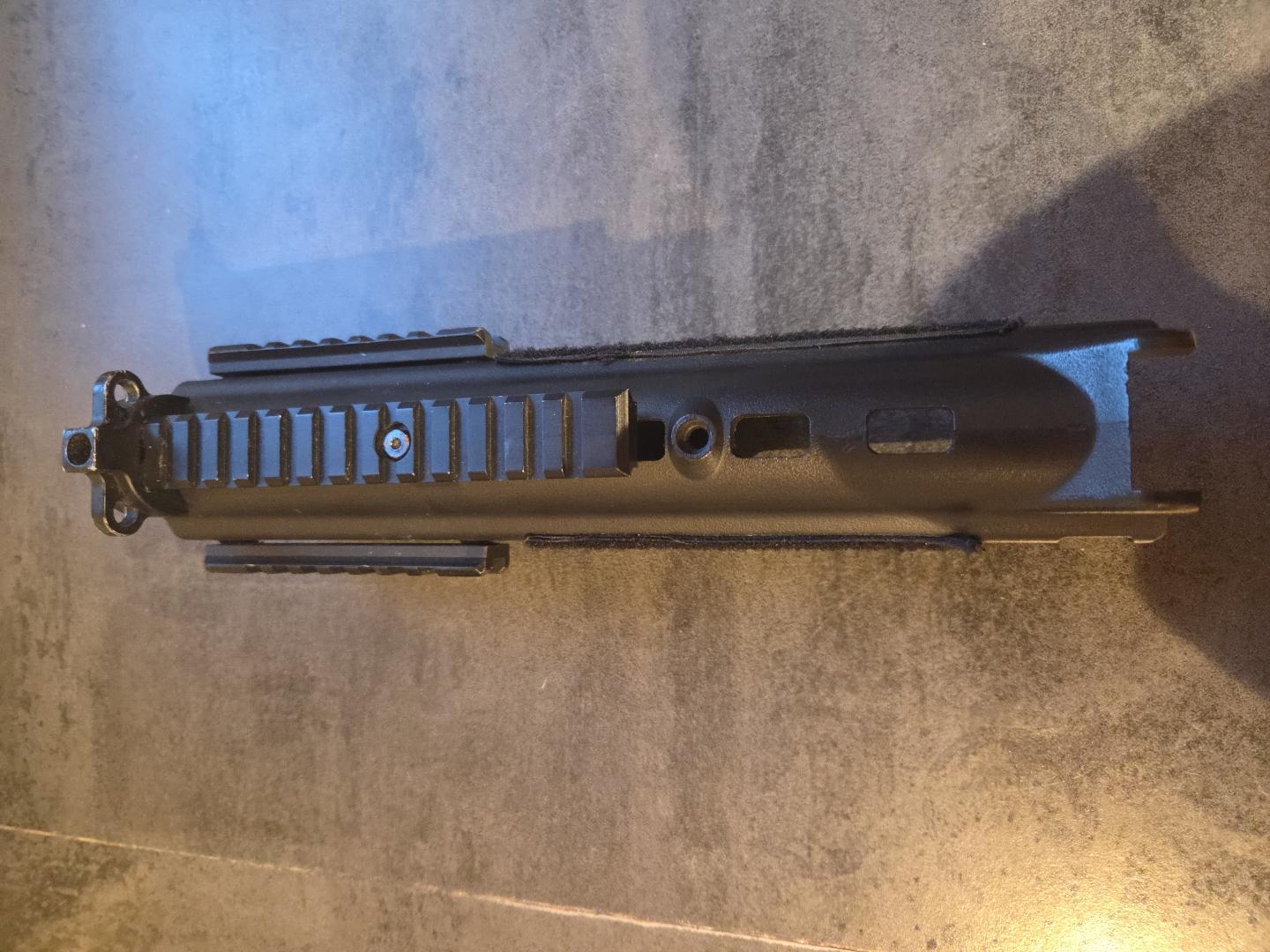 I believe these are JG parts but I am not 100% sure. The foregrips comes with 3 metal rails and has velcro on the sides fir attachments. The barrel extension and flas hider are metal. The price includes postage.