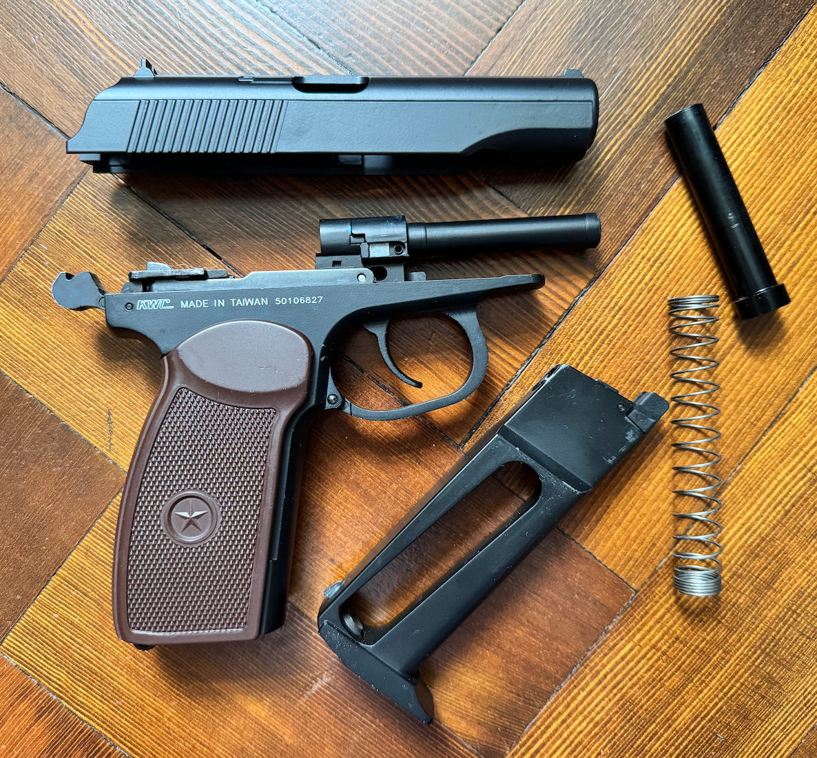You can find more information about this Makarov here: https://jdairsoft.net/kwc-makarov-mp654k-full-metal-co2