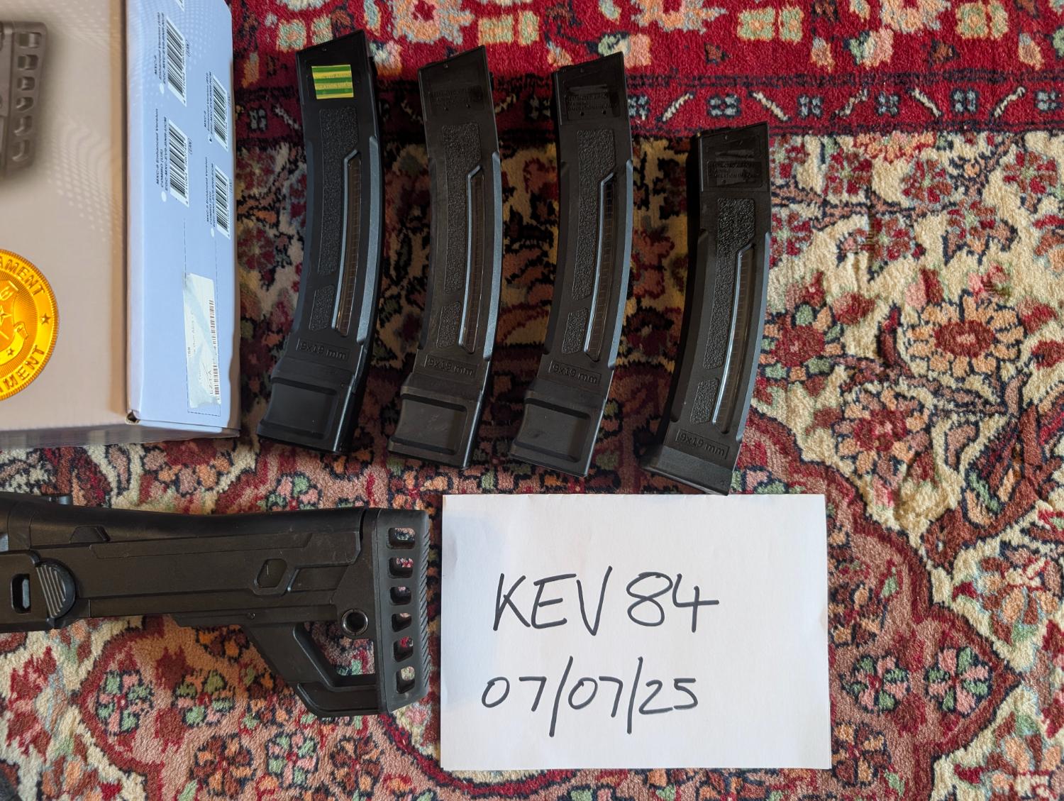 Comes with 4 mags, 3 are larger. One of the mags I've found to be a little temperamental. Has been converted to use a deans connector.
