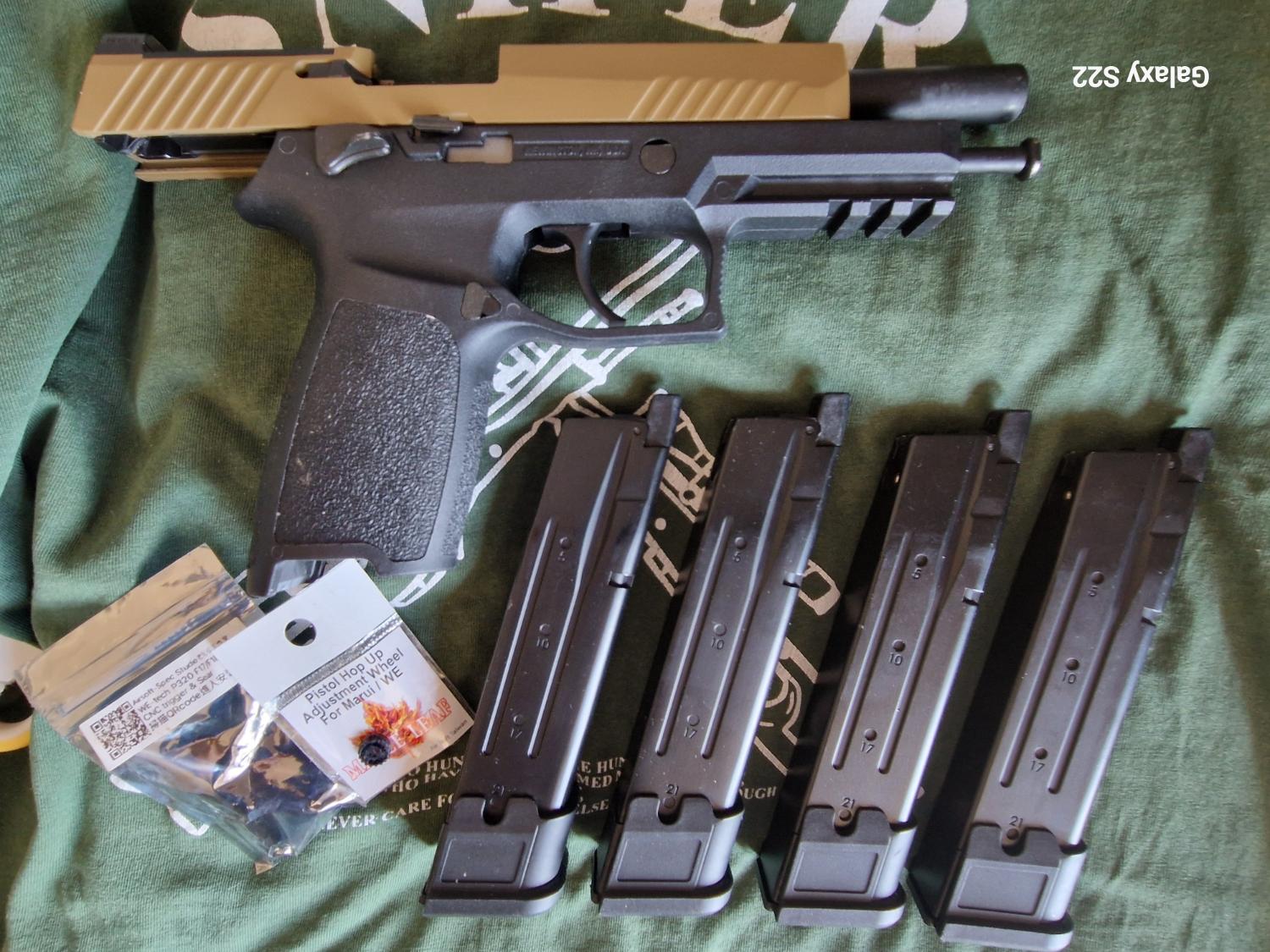 F17 brand new tan slide,4 x mags,2 x c02 2 x green gas,boxed,upgraded hop,/barrel.