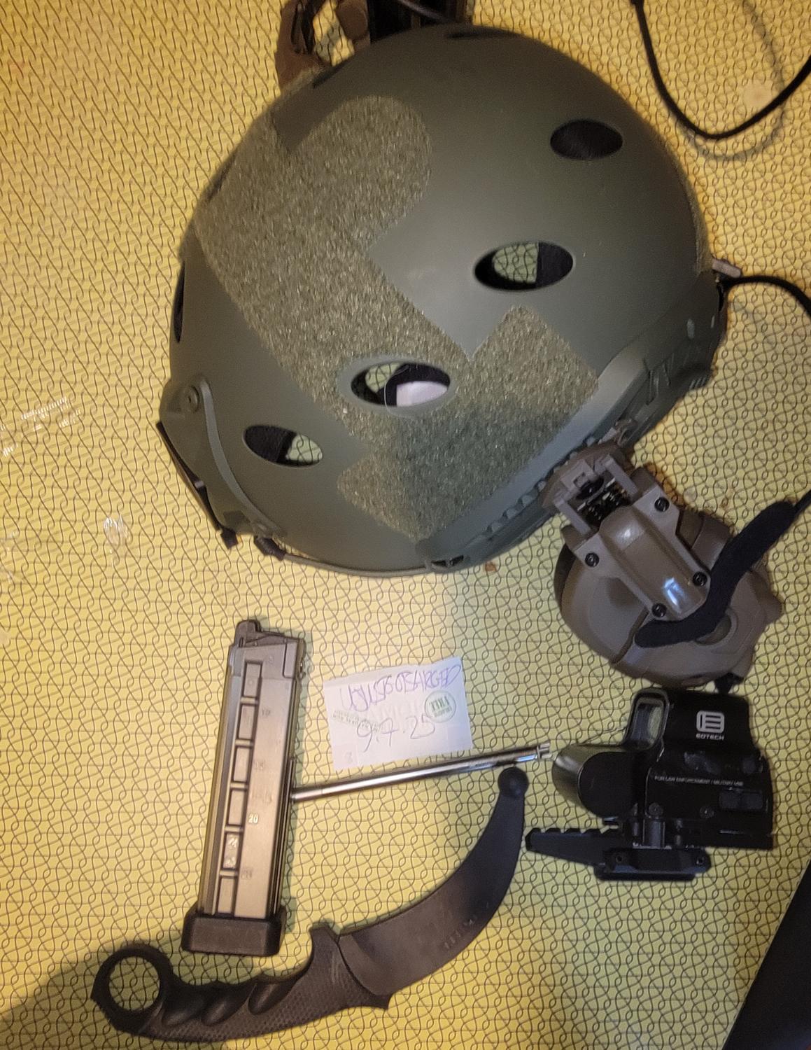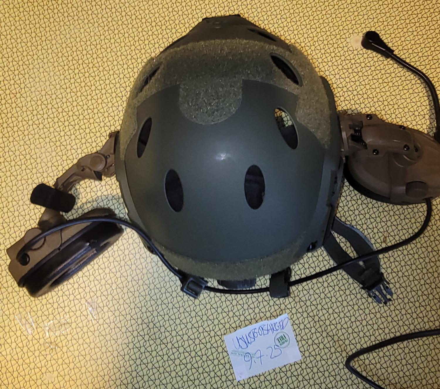 Helmet, with new padding and fma amp headset, noise canceling and radio, fully working. Comes with head strap for the headset as well.£70