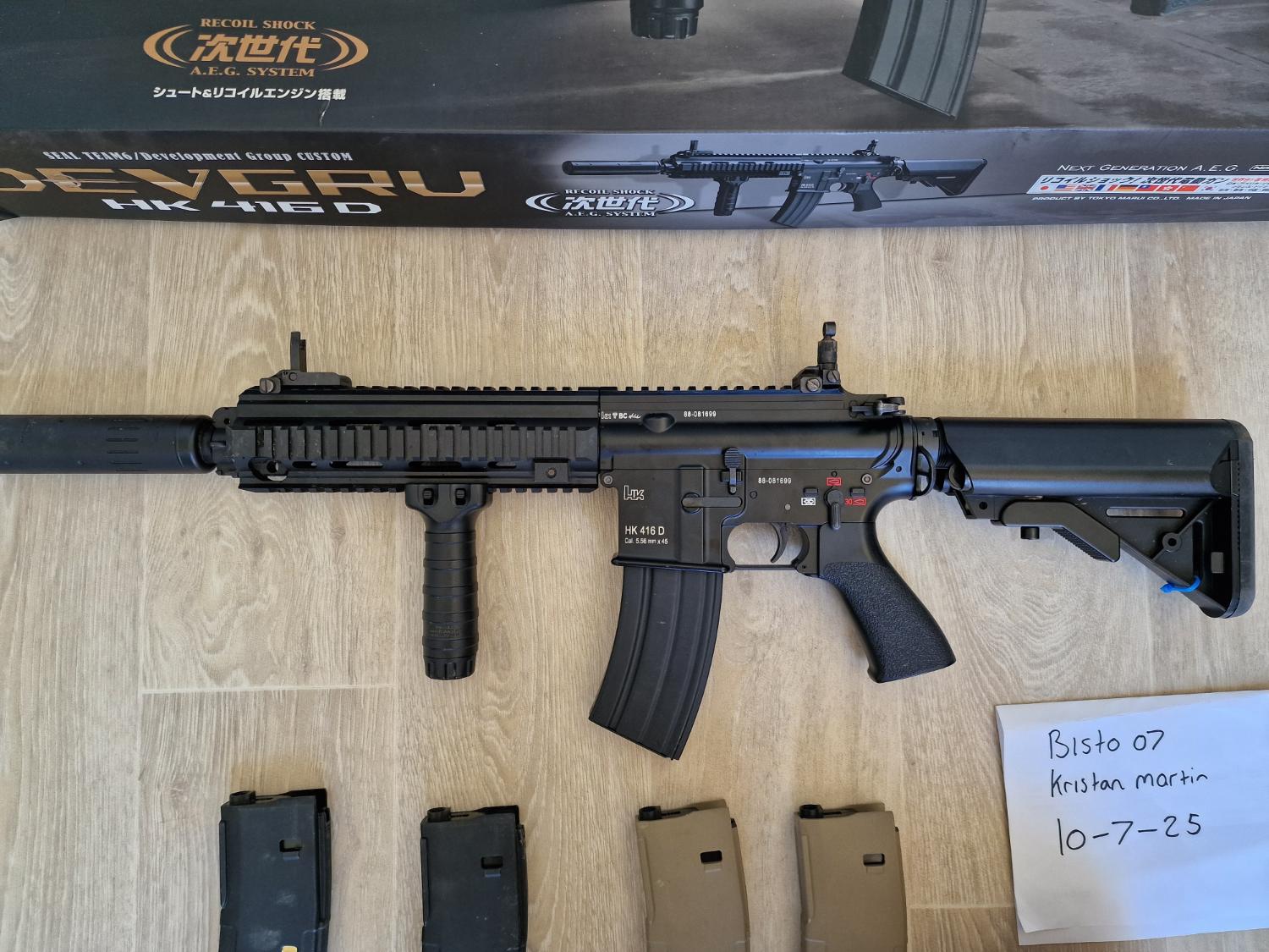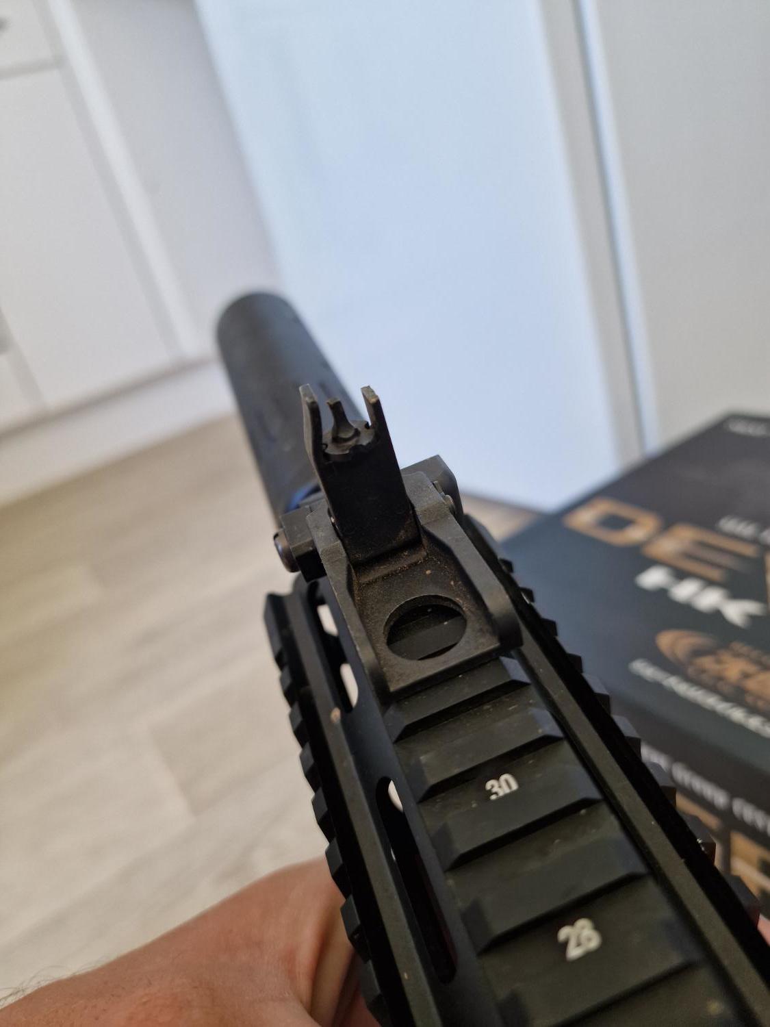 3 years old and skirmished around 10 times. Working perfectly. Gun is in great condition but the front iron sight is slightly damaged.