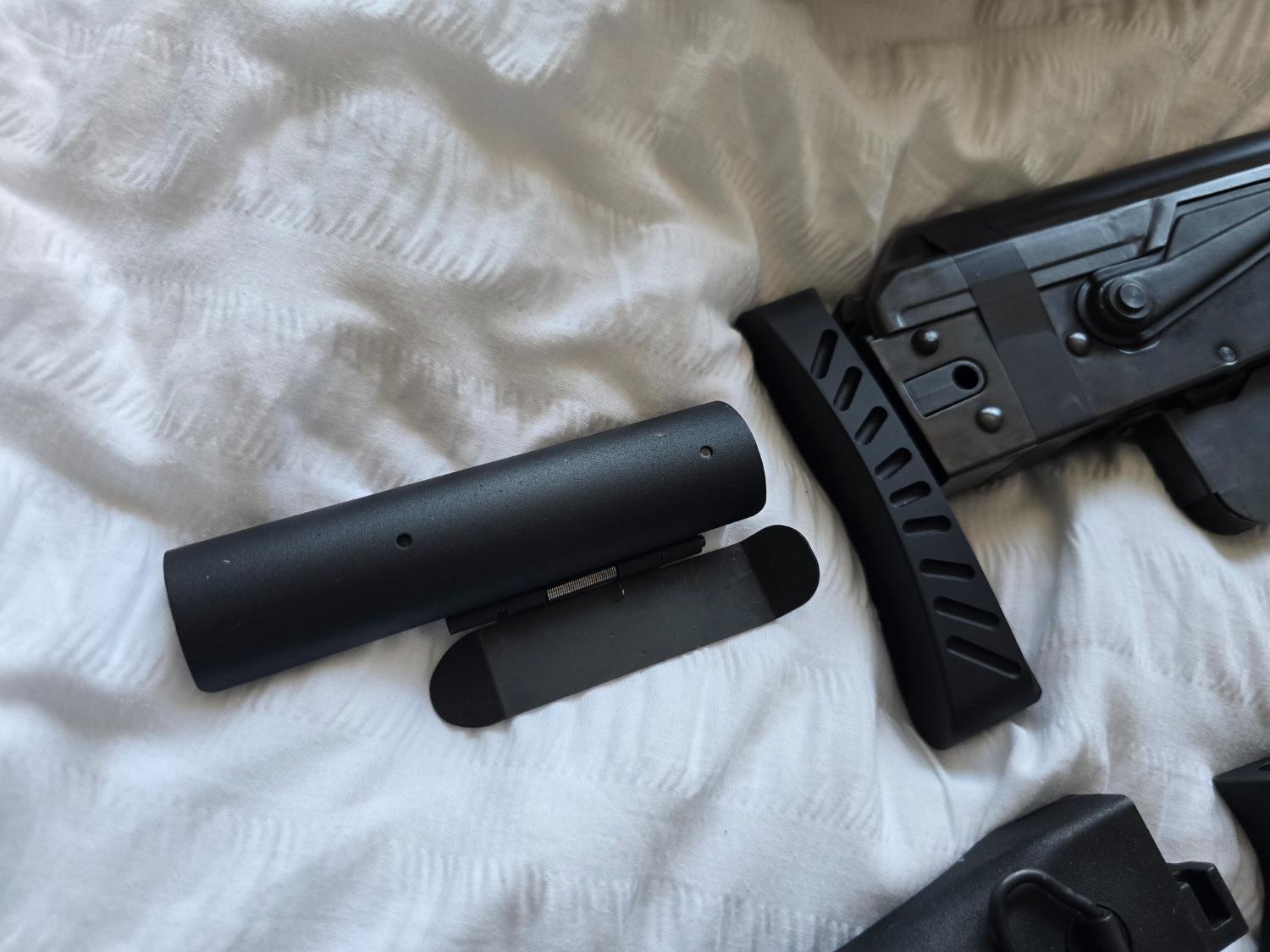 Comes set up in a TWI Kochevnik Bullpup Kit, fitted and tested, works perfectly in semi with red gas. Comes with everything needed to swap it back to a 105. Only thing that needs doing is drilling the top cover for the cheek Riser/brass deflector (pictured).