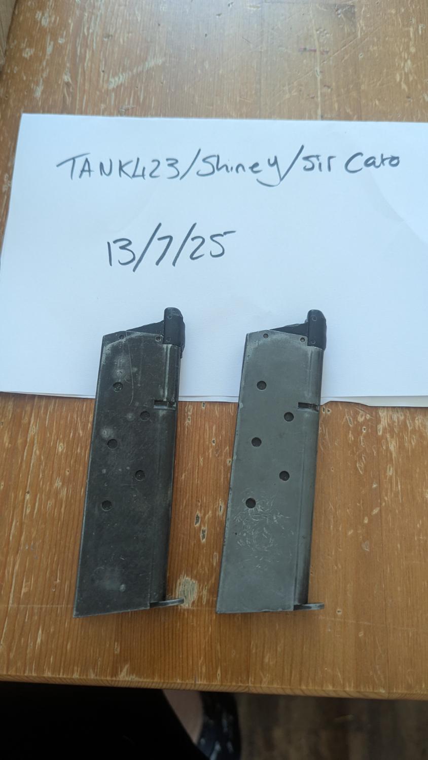 2 X 1911 mags. Not sure of brand, no markings on them other than my initials on the back in small letters. No idea if they hold gas, going to assume not as I haven't had a 1911 that takes these mags for a long time.