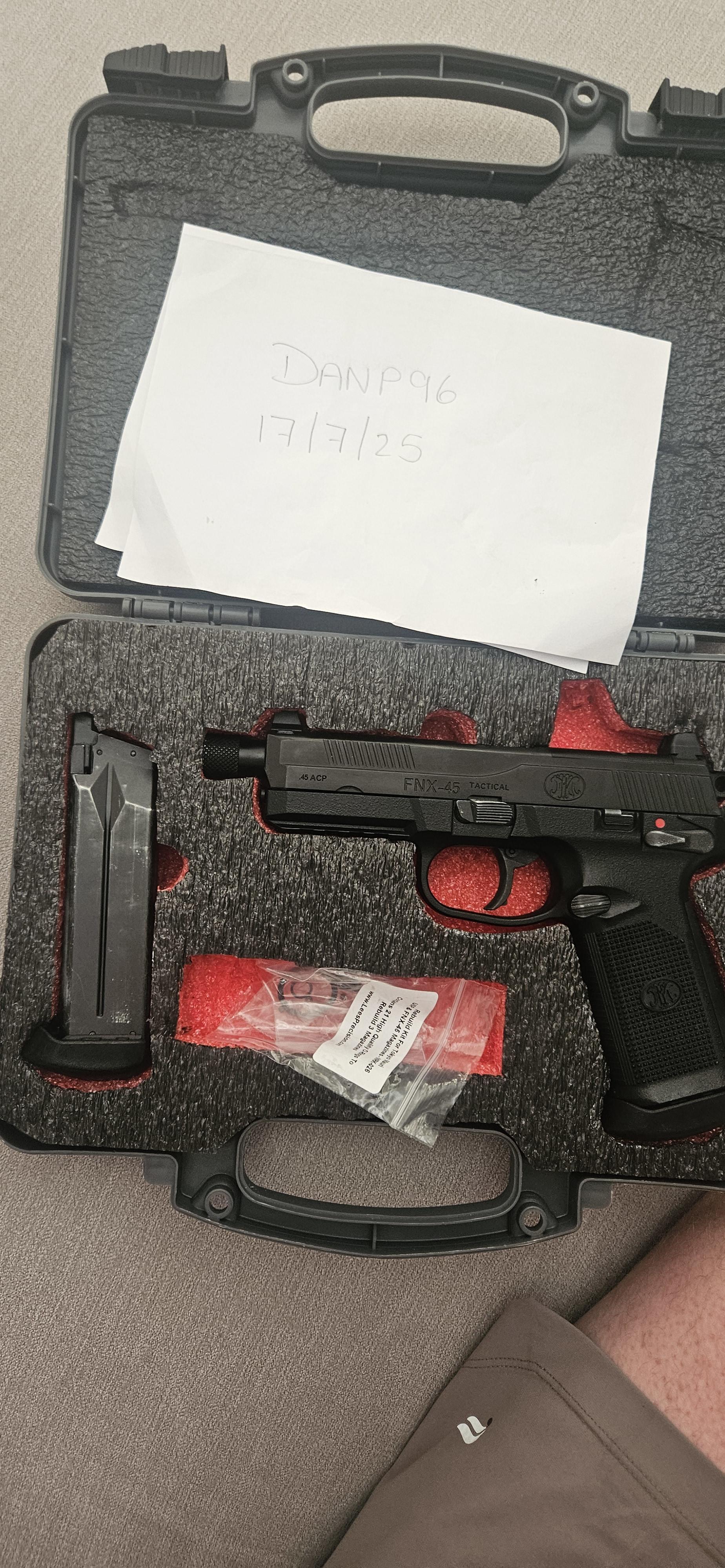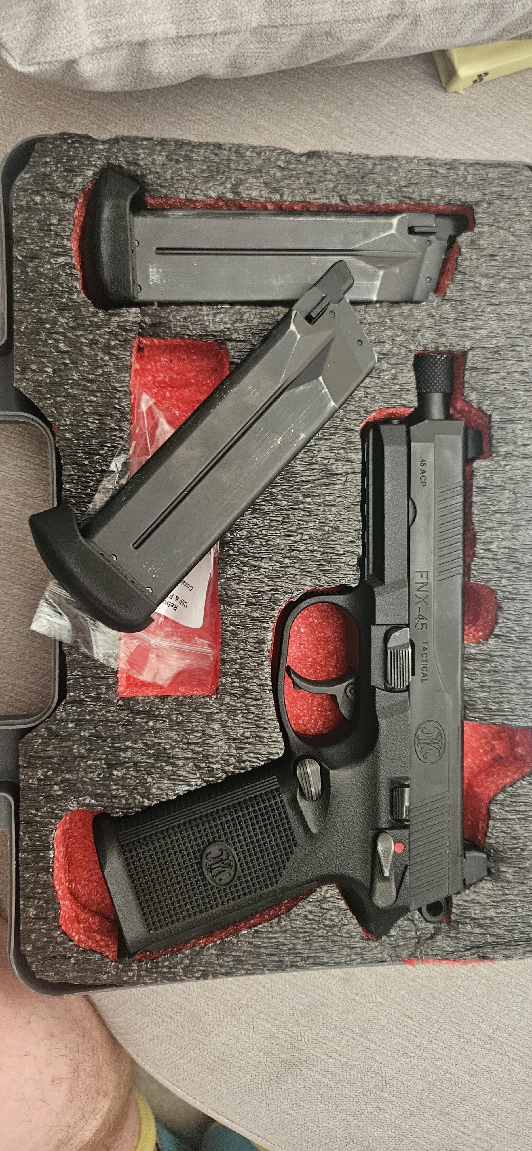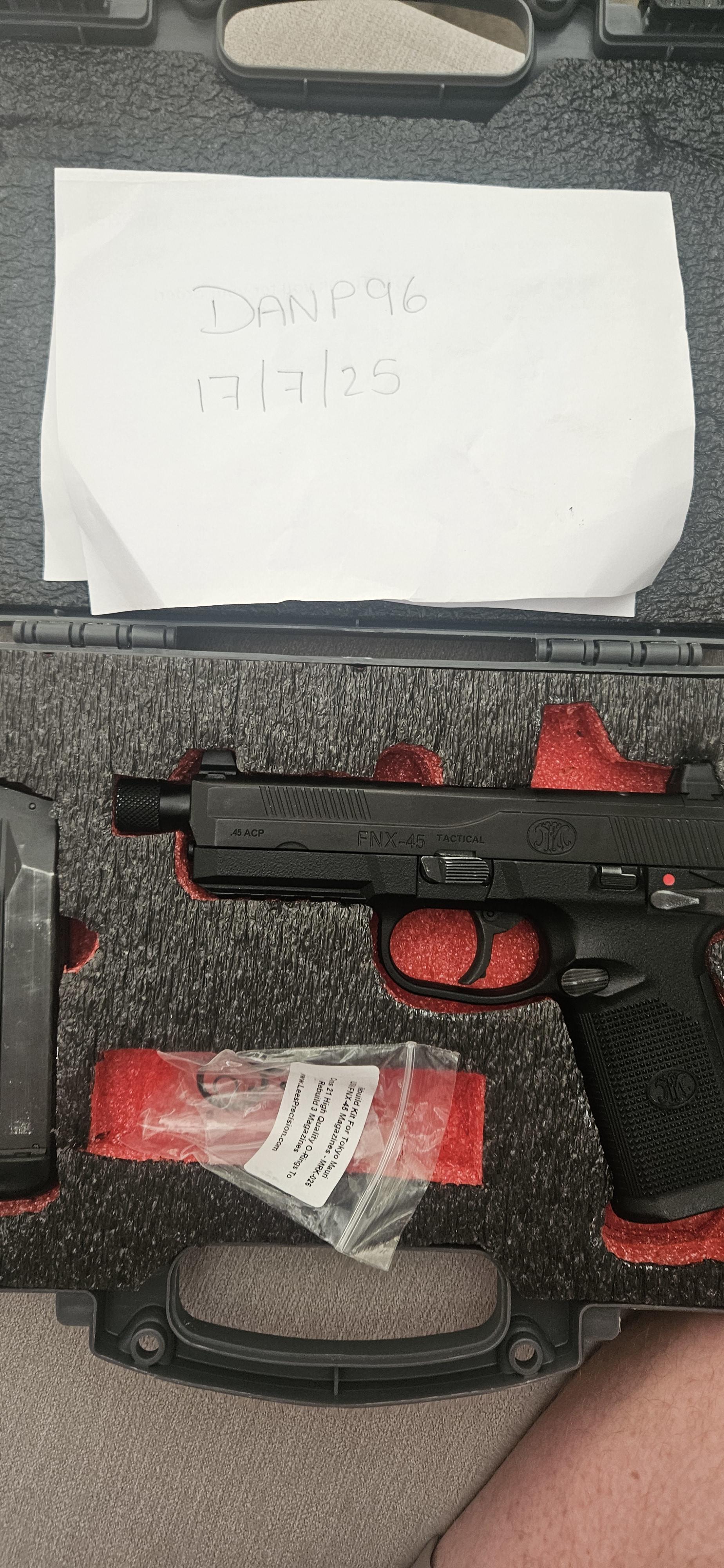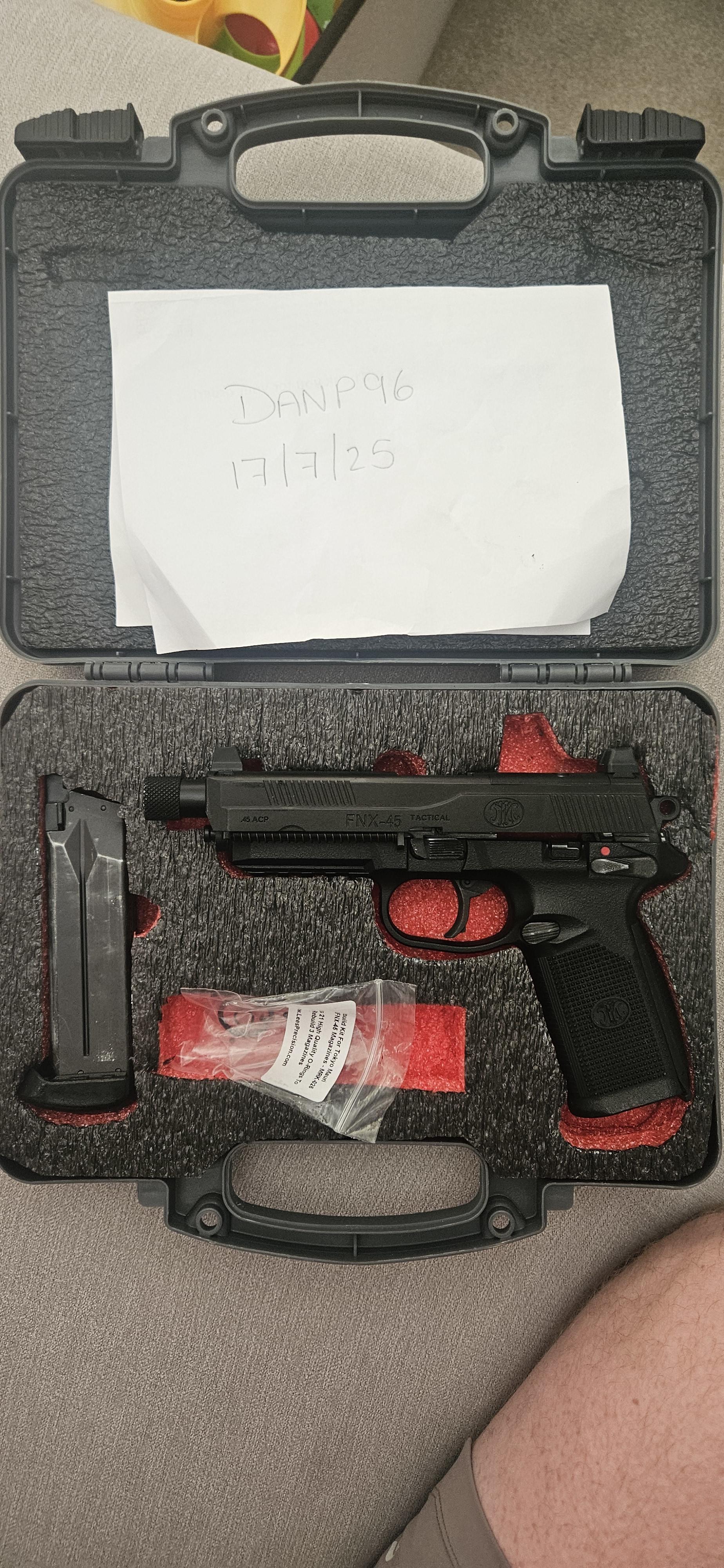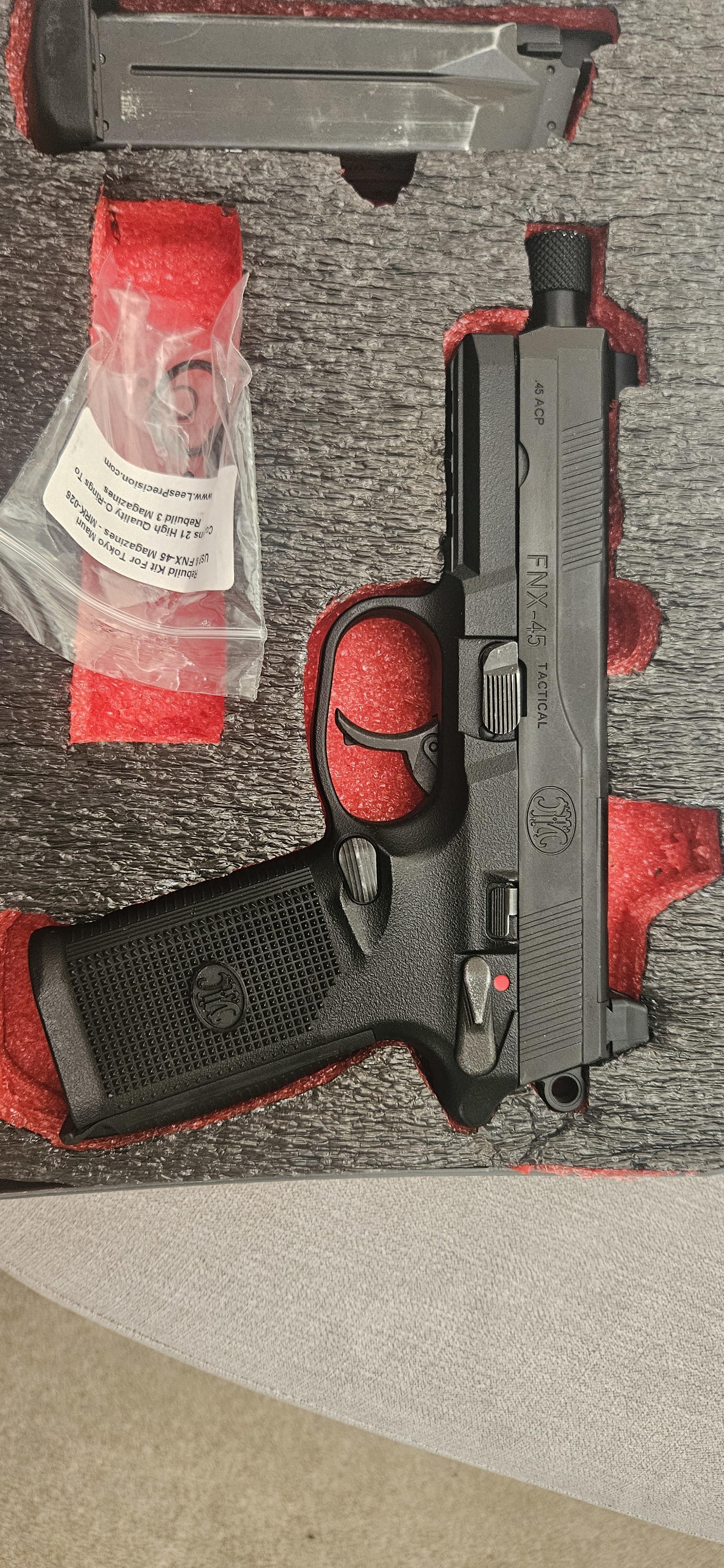 Boneyard Fnx45 with Custom shadow foam case and 2 leak free mags