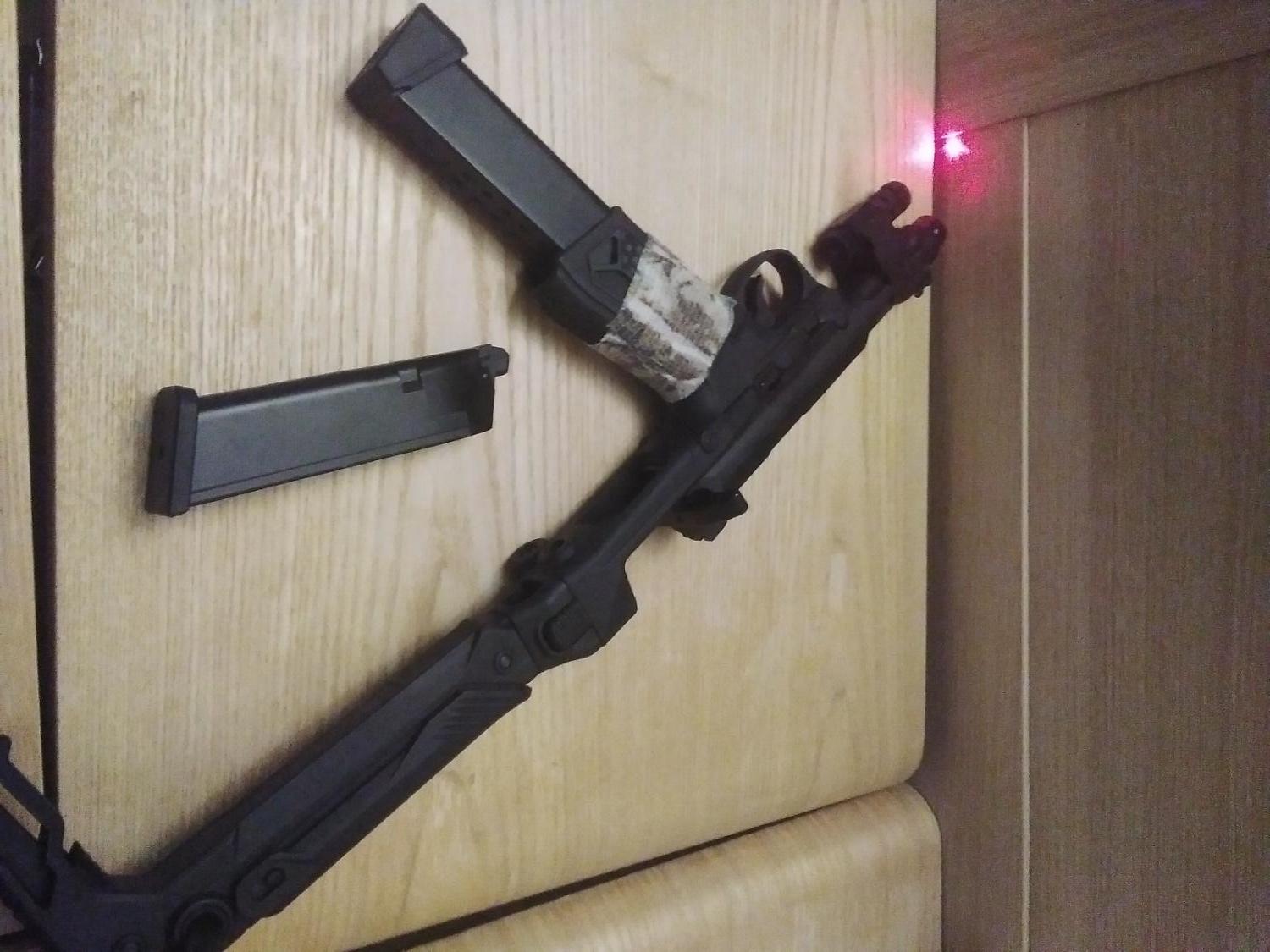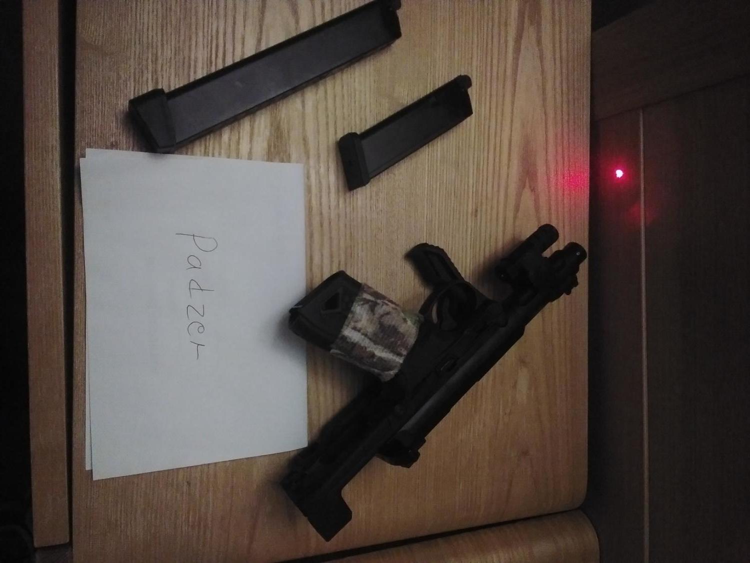 As your main with an extended stock it will clear rooms by emptying it's Tokyo Marui extended mag with 25 shots per second. As your sidearm on semi-auto with laserdot and retracted stock it can support you in clutch moments.