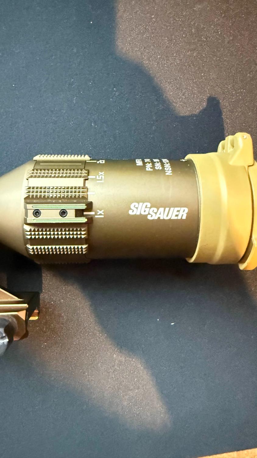 Used but in good condition evolution gear Sig Sauer TANGO6T, sold as seen, mount and included flip caps. I broke the throw lever a while back.